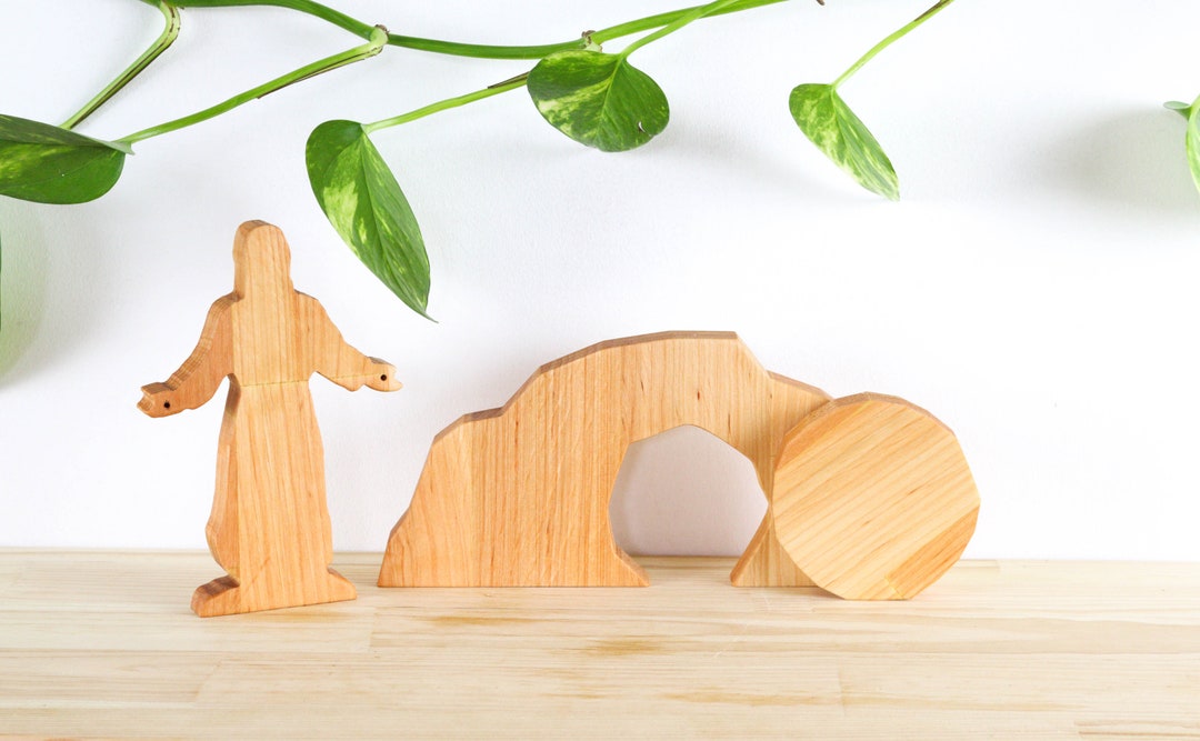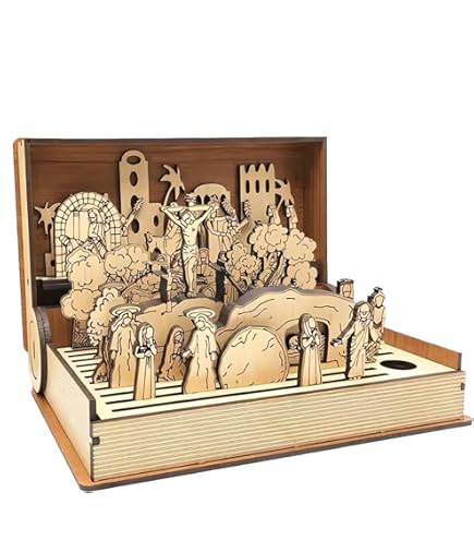 Generisch Jesus Spielzeug, Osterszene Osterkrippe, Ostern Auferstehung Szene Ornament, Ostern Auferstehungsszene Auferstehung Holzdekoration,Jesus Krippe Szene Dekorationen,Hölzerne Osterszenen