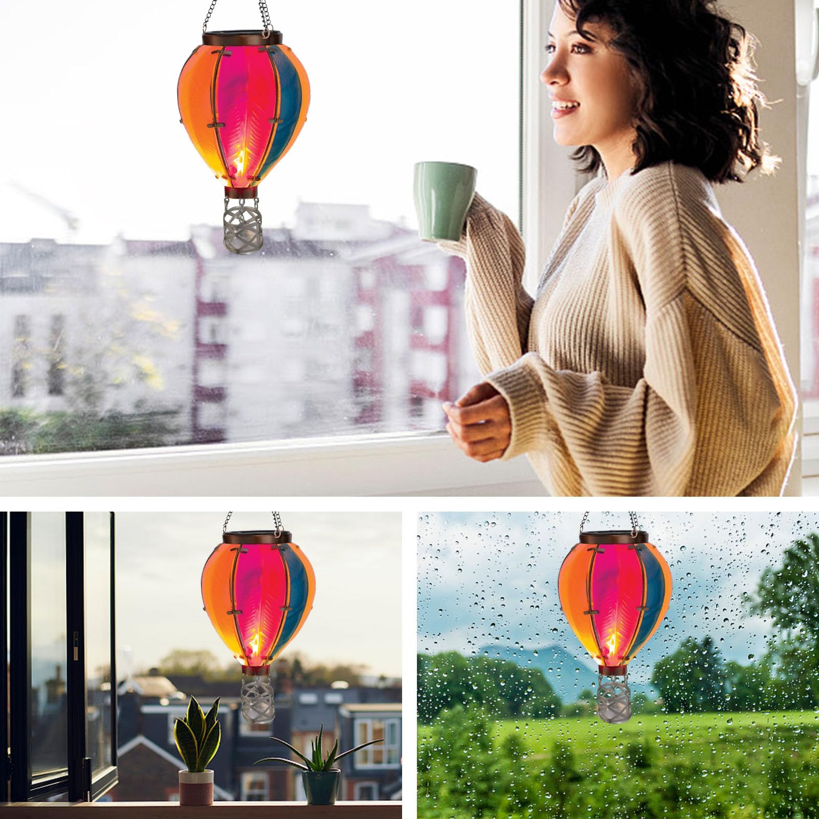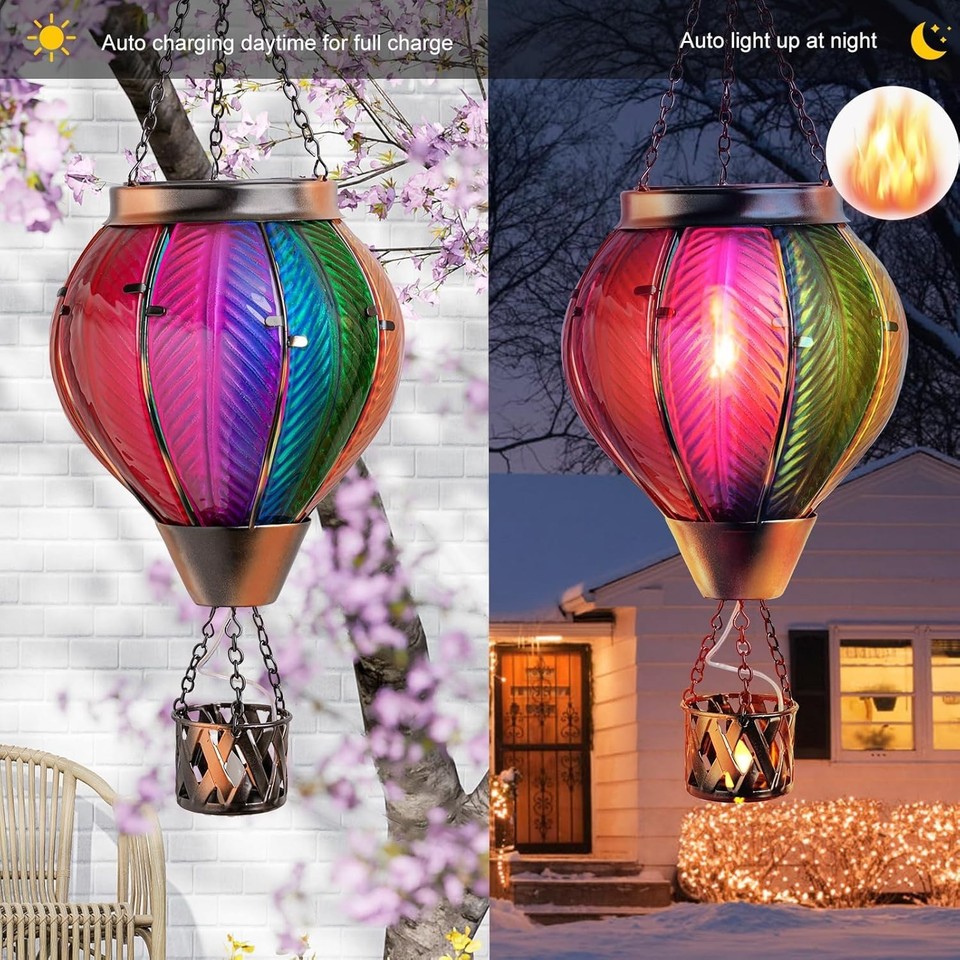 LED Solar Laterne Heißluftballon Windlicht ♛Wasserdichtes Design: Diese anmutig schwebende Solar-Gartenleuchte mit Heißluftballon verspricht mit ihrem wasserdichten Design dauerhafte Schönheit und Zuverlässigkeit und scheint bei Regen und Sonnenschein. Mit ihrem wasserdichten Design und dem Energiesparmechanismus sorgt diese Laterne mit Sicherheit für die perfekte Atmosphäre für Ihr nächstes Outdoor-Abenteuer. Verschönern Sie Ihren Garten mit diesem dekorativen Stück. Erhellen Sie Ihre Nächte mit dieser Solar-Heißluftballonlaterne von Hang. Spezifikation:Produktname: Heißluftballon-Solarlaterne mit flackernder FlammeWasserdichtigkeitsgrad: IP65Stromversorgung: solarbetrieben : PVC + MetallTaste: EIN/AUS (unter dem Panel)Arbeitszeit: 6–8 Stunden nach vollständiger AufladungLadezeit: 6–8 Stunden bei direkter SonneneinstrahlungAnwendungsbereich: Geeignet für Rasenflächen, Geburtstage, Gärten, Innenhöfe, Innenhöfe, Lobbys, Dächer, Wohnzimmer, Schlafzimmer. Perfekt für Ihre , Camping oder jede Outdoor-Aktivität. Heißluftballon-Solarlaterne, Blumacht Hängende Solar Laterne Outdoor Wasserdicht Dekorative Metall Laterne Solarleuchten für Bäume Patio Garten Hof Veranda Dekor Heißluftballon Mit Solar Teksome Heißluftballon-Solar-Gartenleuchte, Solarbetriebene Heißluftballon- Laternen Zum Aufhängen Im Freien | Heißluftballon-Solarlaterne Mit Kerzenhalter,Heißluftballon-Solarlampe, Dekorativ Für Led Heißluftballon Von Schuhen bis zur Kleidung, von Sportgeräten bis zu Accessoires. Perfekt, um die Ästhetik jedes Außenbereichs zu verbessern: sei es eine Terrasse oder , ein Baum oder ein Rasen.