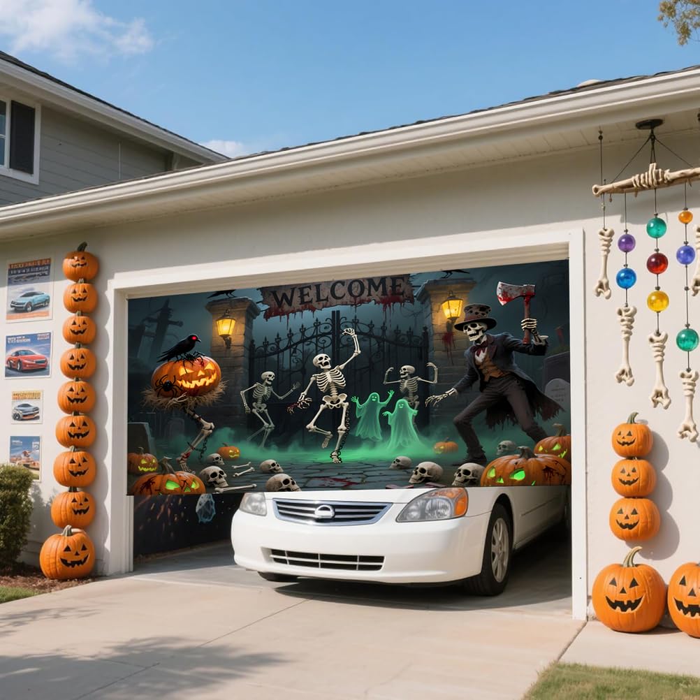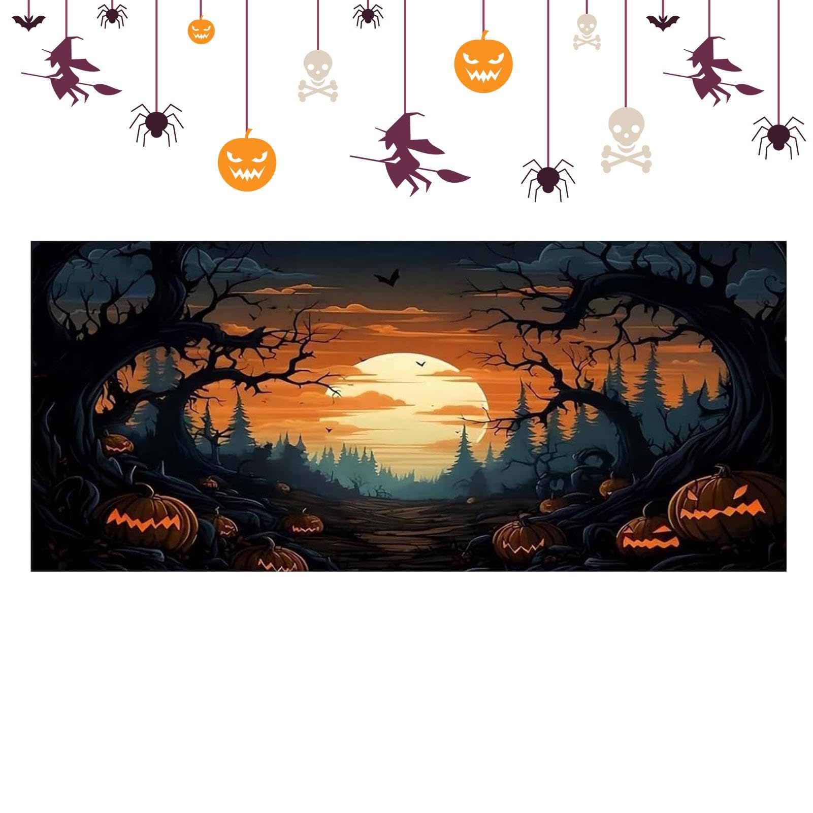 Halloween-Garagentor-Banner Zum Aufhängen, Türabdeckung, Gruselige Hexe, Kürbis, Schloss, Friedhof, Halloween-Party-Dekorationen Für Zuhause, Wand, Fenster, Hof, Innen- Und Außenbereich (D, 400 X 180