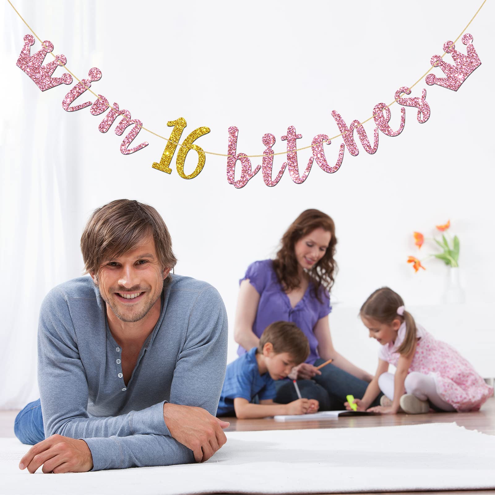 Banner Mit Aufschrift „I 'm 16 Bitches", Rotgold, Glitzernd