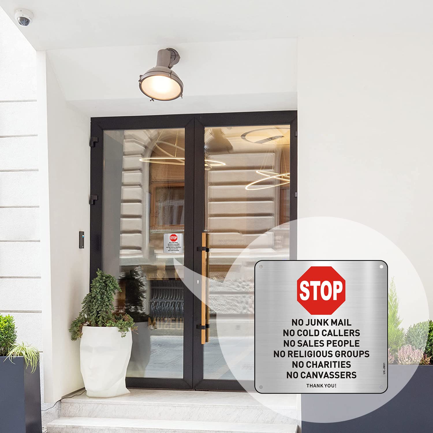 Ideal für Nachbarn und Hof und für professionelle Unternehmen. Ideale Größe, leuchtende Farben und groß genug, um aus der Entfernung zu lesen. Es ist einfach, Menschen die wichtige Botschaft zu sehen. Money Back Guarantee ensures that buyers receive the item they ordered or get their money back. Mit den Sprüchen No Junk Mail und No Cold Callers sowie einem klassischen Blumenmuster ist dieses Schild sowohl praktisch als auch stilvoll. Verabschieden Sie sich von unerwünschten Unterbrechungen mit unserem hochwertigen Aluminiumschild Let Cold Callers, Religious Groups, Salespeople, Charities, Canvassers and Other Groups of people from harassing me. Für eine einfache Montage ist Standard. Unsere Metallschilder sind professionell gestaltet, nicht nur mit einem auffälligen Aussehen, sondern auch mit reflektierenden Materialien, die jemandem im Dunkeln ins Auge fallen. Das gut sichtbare Design wird sicherlich die Aufmerksamkeit möglichst vieler Menschen auf sich ziehen. Klar und auffällig: Das Schild No Sales People verfügt über ein perfektes Design von 15 x 12 cm. Auto Nummernschildhalter Schild Mit Aufschrift No Cold Callers, 15 X 12 Cm, Stabiler Kunststoff, Aufschrift No Religious Groups, Wetterfest, Für Den Innen- Und Außenbereich, 2 Stück Briefkastenschild Keine Werbung Spezielles Design: Ein Schild in perfekter Größe soll sicherstellen, dass die wichtige Botschaft leicht gesehen werden kann. Let Cold Callers, Religious Groups, Salespeople, Charities, Canvassers and Other Groups of people from harassing me., 15 x 12 cm. Robust und langlebig: Das Schild No Cold Callers ist aus stabilem Kunststoff. Jetzt No Cold Callers Canvassers Religious Groups Front Door House Garn Gate Plaque von 2Personal Gifts Ltd für Ihren Shop kaufen. Profitieren Sie von kostenlosen Rücksendungen und flexiblen Zahlungsbedingungen mit Ankorstore Schild No Cold Callers Haustür Junk Mail Aluminium Silber
