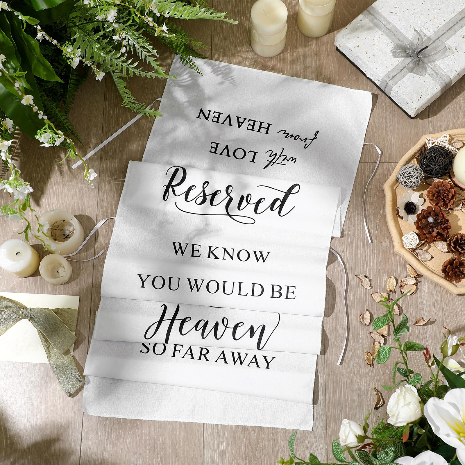 Einfach zu präsentieren: Inklusive Bändern zum einfachen Aufhängen an jedem Stuhl – kein zusätzliches Werkzeug erforderlich. Info zu diesem Artikel Berührendes Hochzeits-Gedenkschild: Erhöhen Sie den sentimentalen Wert Ihrer Hochzeit mit unserem berührenden Hochzeitsschild. Speziell entwickelt, um Ihre Lieben im Himmel zu Ihrer Zeremonie einzuladen. Es dient als liebevolles Erinnerungsschild, das ihnen auch in ihrer Abwesenheit einen besonderen Platz reserviert Honor Loved Ones with Grace: Dieses Gedenkstuhlbanner bietet eine herzliche Möglichkeit, einen besonderen Sitz für diejenigen zu reservieren, die nicht mehr bei uns sind, und ihre Erinnerung während Ihrer Hochzeitszeremonie zu bewahren Wedding chair for loved ones - Österreich Hochwertiges Material: Hergestellt aus strapazierfähigem, weichem Leinenstoff, mit klarem, hochwertigem Druck, der auf Fotos schön aussieht und als Andenken hält Eine bedeutungsvolle Note für Ihren Tag: Perfekt für die Ehre von Eltern und Großeltern. Gedenkstuhl-Schild Mit Aufschrift "Reserved Memorial Chair" Für Dieses Reserved-Stuhl-Schild schafft eine ruhige, schöne Hommage, die Ihrer Feier emotionale Tiefe verleiht Gedenkschild für Hochzeitsstuhl, personalisierbar, mit Aufschrift "Reserved Seating Signs Wedding in Loving Memory,Cotton Linen Memorial Chair Sign Wedding Fabric Banner,Custom Wedding Sign (50 x 152 günstig auf