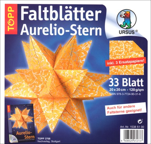 Die Bastelblätter haben die Größe von ca. Aus beidseitig bedrucktem Papier bei einer Papierstärke von 80 g/qm Bastelset für einen dreidimensionalen Weihnachtsstern im Ilex Design in den Farben weiß/schwarz/türkis Produktbeschreibung Basteln Sie Ihren eigenen dreidimensionalen Stern. Enthalten 33 Faltblätter und haben eine Größe von ca., 10 x 10 cm Mit dem Aurelio Stern Set von Ursus gelingt Ihnen der beliebte Papierstern in Handumdrehen. Ursus Aurelio Stern Set 110g/m² 15x15cm 33 Blatt Bellatrix ab 7,95 Bascetta Stern Papier 15x15 Faltblätter Aurelio Stern Jade 80g/qm 10x10cm Weiß/schwarz/türkis Papierstern Schwarz 33 Faltblätter aus Motivpapier; beidseitig bedruckt; Vorderseite im Design; Rückseite in der Farbe Türkis; Papierstärke: 80 g/m²; Größe: 10 x 10 cm Um diesen Stern zu basteln, müssen zuerst 30 gleich große, quadratische Faltblätter identisch gefaltet werden. Der Aurelio Stern ist ideal als schöne Wohndekoration und sorgt für eine intensive Weihnachtsatmosphäre., Warnhinweise Keine Warnungen Ursus - Ludwg Bähr Bastelkartonpaper Faltblätter Aurelo Stern... Das Set im Jade Design in den Farben weiß/schwarz/türkis enthält 33 Faltblätter aus Papier, bei einer Papierstärke von 80 g/qm. Faltblätter Aurelio-Stern "Black & White" Spiralornament weiß 14,8 x 14,8 cm Buntpapierwelt