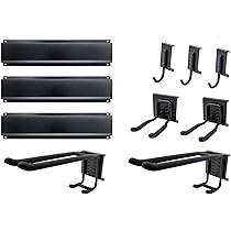 GALLUNOPTIMAL 36 Teiliges Gerätehalterung Set Bestehend Aus 3 Stahl Schienen 7 Halter 2 Nylonklettschlaufen Und Befestigungsmaterial Stahlblech Schwarz Lackiert Mit Gummierten Halterarmen