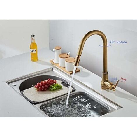 Küchenarmatur Aus Antikem Messing, Retro-Mischbatterie Aus Messing, Antiker Ausziehbarer Wasserhahn Spruh Kuchenarmatur Um 360 Drehbare Kuchenmischbatterie 85521404