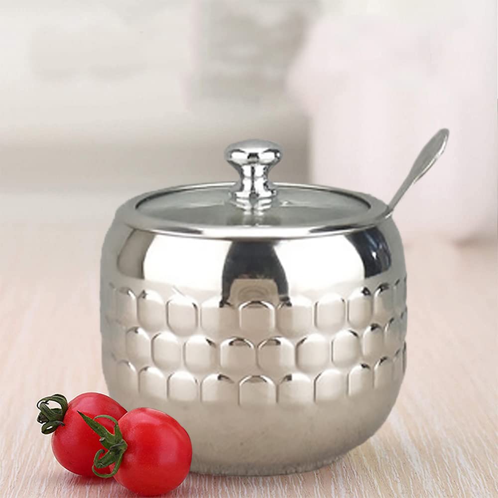 Nützliche Zuckerdose Aus Elstahl Mit Löffelckel, Vorratsglas Aus Gold Und Silber, Langlebig, Großes Fassungsvermögen, Gewürztopf, Salz