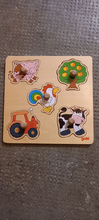 Goki Steckpuzzle Aus Holz - Bauernhof - Guter Zustand (Neu (gemäss