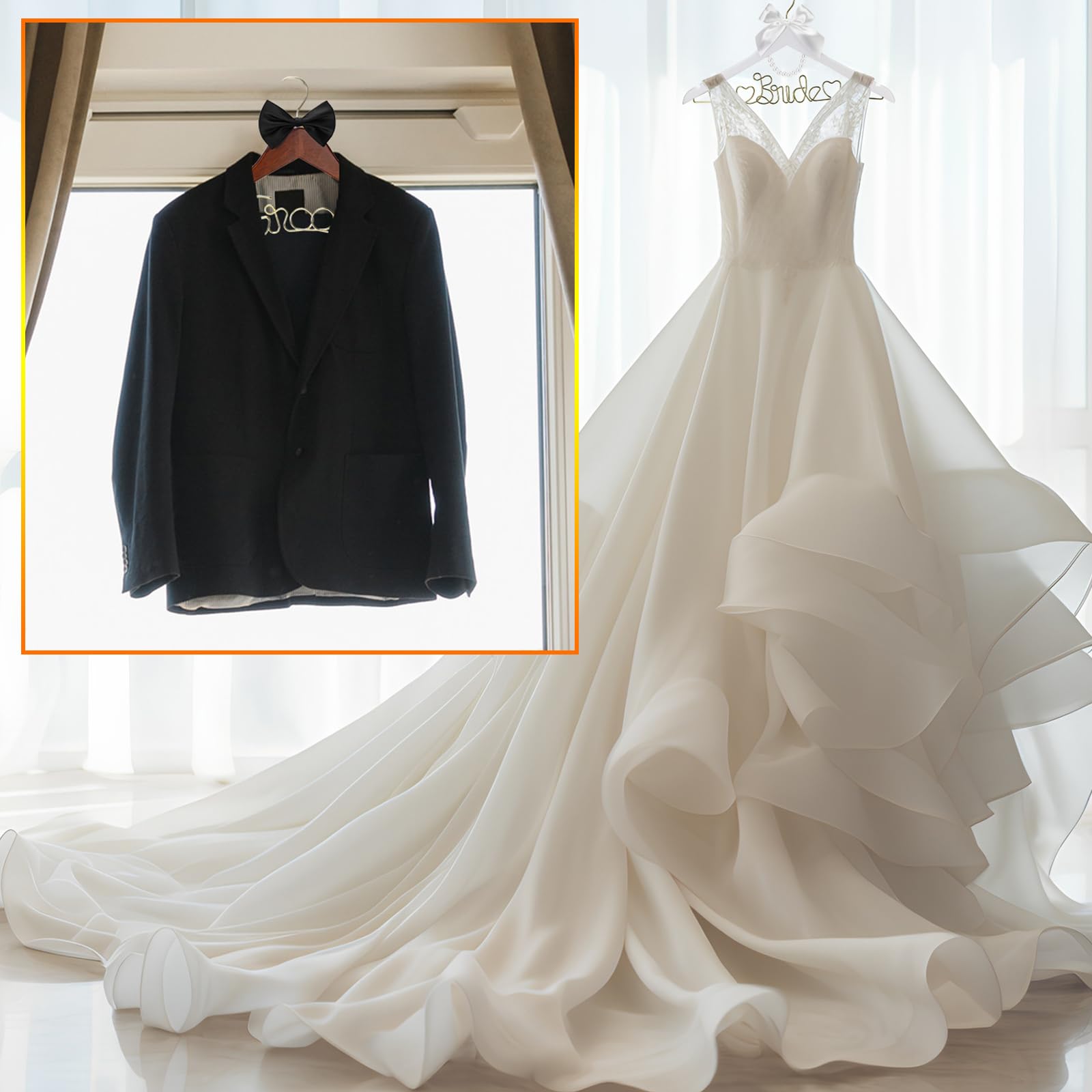 Braut-Kleiderbügel-Set Aus Holz Mit Fliege Für Smoking, Anzug, Hochzeitsgeschenk, Brautparty, 2 Stück (einfach
