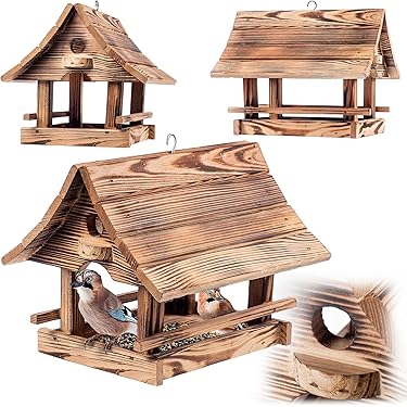 Vogelfutterhaus Mit Silo Aus Holz- Vogelhaus Zum Aufhängen