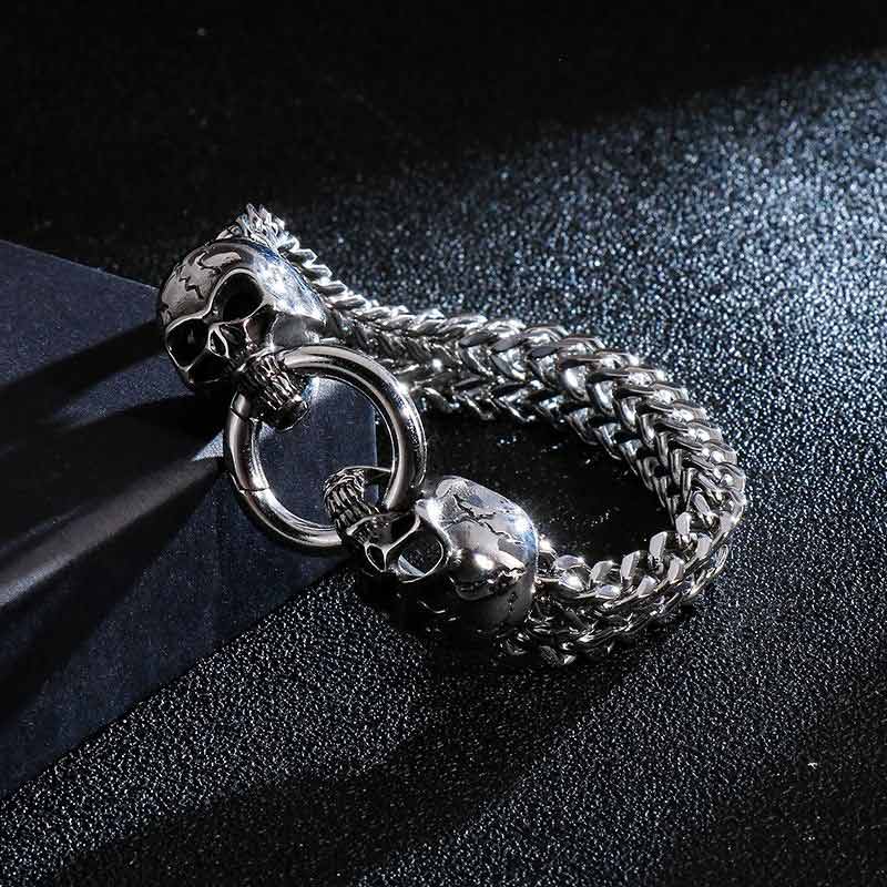 Totenkopfarmband Aus Massivem 316L Edelstahl Herren Biker Armkette Silber Skulls