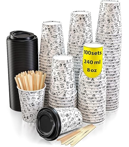500 Weiße Pappbecher 200 Ml Mit Deckel Aus Papier, Umweltfreundlich, Biologisch Abbaubar, Einwegbecher, Hergestellt In Italien, Von Asporto