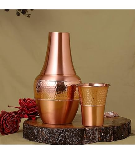 Außenfutter nur die Kupferkaraffe., Hergestellt in Indien Um Kupferwasser herzustellen, gießen Sie Wasser in die Kupferkaraffe und lassen Sie es über Nacht stehen. Die Kupferkaraffe sollte nicht im Kühlschrank aufbewahrt werden. ANCIENTIMPEX Nachttischkaraffe aus reinem Kupfer für Ayurveda-Gesundheitsvorteile, Fassungsvermögen: 1 Liter (33,81 US Flüssigkeit) (einfarbig) von ANCIENTIMPEX. Profitieren Sie von den gesundheitlichen Vorteilen von mit Kupfer angereichertem Wasser und verleihen Sie Ihrem Alltag einen Hauch von Eleganz. Ob zu Hause, im Büro oder unterwegs, diese vielseitige und stilvolle Karaffe ist Ihr perfekter Begleiter für die Flüssigkeitszufuhr Perfekt für beide Beistelltische. Fassungsvermögen der Flasche: 1000 ml., (33,8 US Fluid Ounce). Sie können Ihre Kupferkaraffe auch verwenden, um jederzeit Wasser daraus zu trinken. Hergestellt aus reinem Kupfer. Lassen Sie es einige Minuten einwirken und waschen Sie es mit Wasser. Kupferbecher Ayurveda AncientIpex Krug Aus Reine Kupfer (99,74 %), Gehäertes Wasser Kupferbecher Reines Kupfer Perfektes Geschenk für Jahrestag, Weihnachten, Valentinstag usw. Ayurveda empfiehlt eine einfache, praktische und effektive Methode, Wasser auf ganzheitlichste Weise zu trinken - Wasser aus einer Kupferkaraffe zu trinken. Verwenden Sie Zitronensaft oder Tamarinde, um die Utensilien zu reiben. ANCIENTIMPEX" Wasserkaraffe für den Nachttisch aus reinem Kupfer für Ayurveda-Gesundheitsvorteile, Fassungsvermögen Shankar & sons Yuvika 5 Liter Wasserspender aus gehämmertem Kupfer (Matka/Pot) Behälter Topf mit 2 Kupfergläsern und Ständer, reines Kupfer und ayurvedische gesundheitliche Vorteile (5000ml
