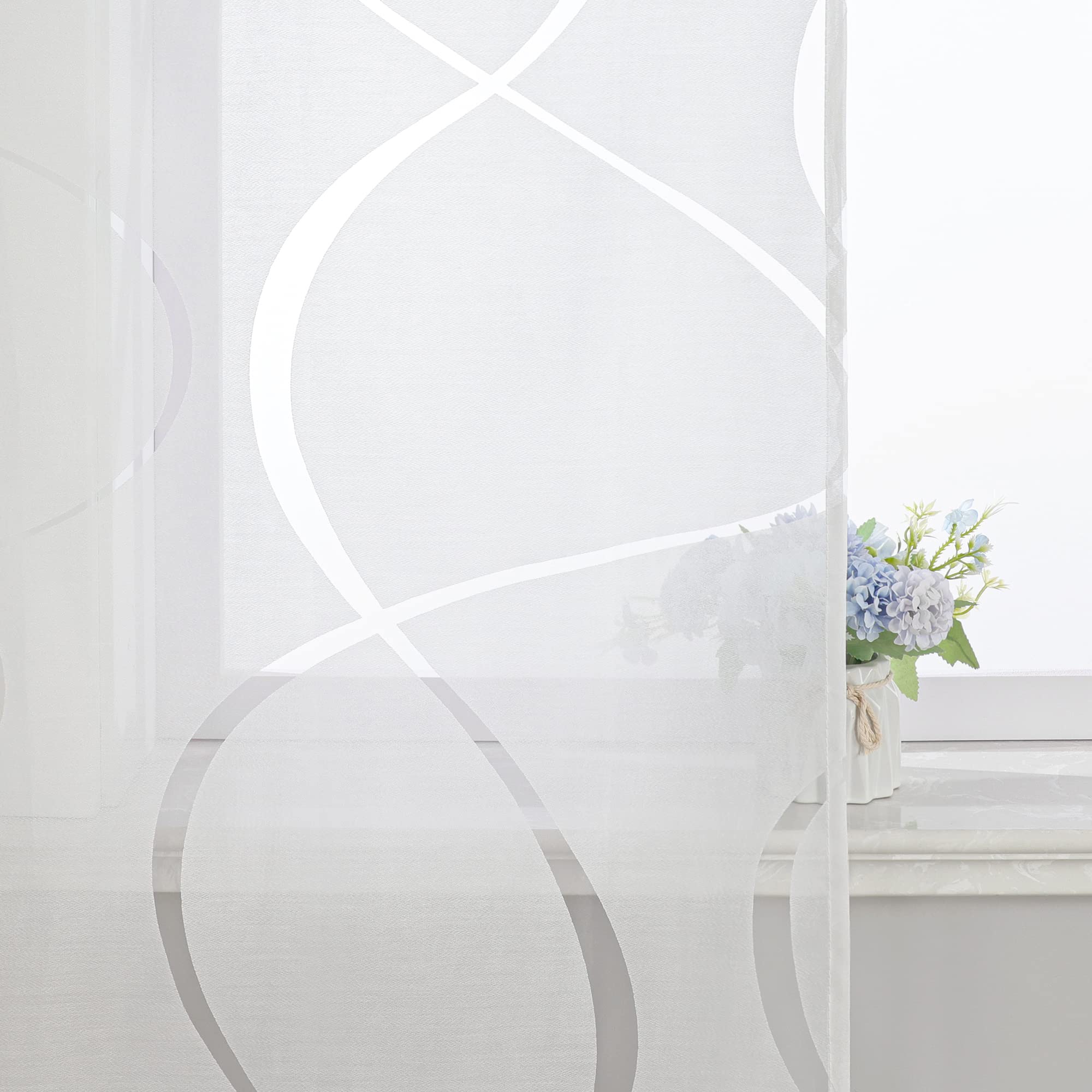 ESLIR Schiebegardinen Ausbrenner Flächenvorhänge Set 2er Gardinen Mit Klettband Schiebevorhang Transparent Vorhang Weiß BxH 57x225cm 2 Stück