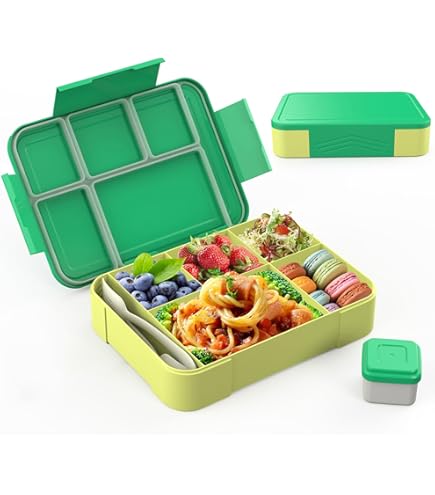 IJIAMY Brotdose Kinder Mit Fächern, 1300ml Jausenbox Kinder, Auslaufsicher Bento Box, Lunchbox Kinder, Vesperdose Für Kindergarten & Schule (Grün