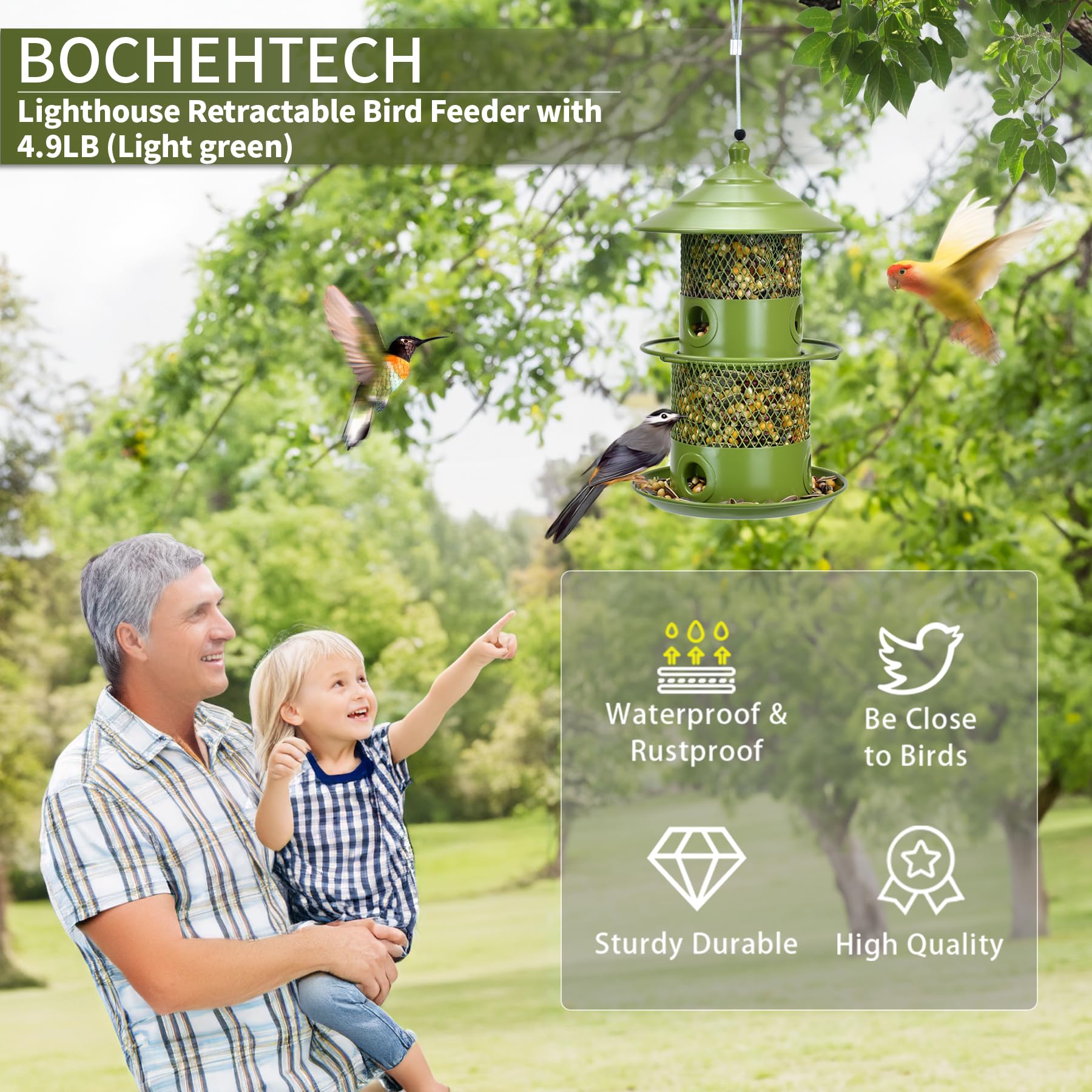 Einfach zu bedienen: Das offene Dach des Futterspenders und die große Einfüllöffnung machen das Nachfüllen von Saatgut mühelos. EINFACHE HANDHABUNG - Die Futterspender öffnen Dach und die große Einfüllöffnung machen das Nachfüllen von Saatgut mühelos. Im Lieferumfang enthalten: Paket: 1 x Vogelfutterstation Besonderheiten: Zuverlässige Leistung: Hergestellt aus robustem Eisen, hält dieser Futterspender den Elementen im Freien stand und verfügt über ein schützendes Dach für Widerstandsfähigkeit bei jedem Wetter gegen Regen, Wind und Schnee. Abflusslöcher verhindern Wasseransammlungen 【Praktisches Design】 Mit sechs Futteröffnungen und einem doppellagigen Futterdesign zieht dieser Futterspender Vögel aus allen Winkeln an. Zuverlässige Leistung: Hergestellt aus robustem Eisen, hält dieser Futterspender den Elementen im Freien stand und verfügt über ein schützendes Dach für Widerstandsfähigkeit bei jedem Wetter gegen Regen, Wind und Schnee Die Eichhörnchensichere Vogelfutterstation mit integriertem Seil zum Aufhängen ist bequem für die Platzierung und sorgt dafür, dass der Deckel verriegelt ist... Vogelhaus Zum Aufhängen Ausziehbarer Doppel-Futterspender Für Den Außenbereich, Metallgeflecht, Eichhörnchensicher, Stilvolle Garten-Terrassen-Dekoration Für Vogelbeobachtung (Hellgrün Vogelhaus Hängend Wetterfest Abflusslöcher verhindern Wasseransammlungen. Hinweis: Bitte erlauben Sie 1-3 cm (0., 39-1 45,7 cm) Unterschied aufgrund manueller Messung und leichte Farbabweichungen aufgrund unterschiedlicher Bildschirmeinstellungen. Yuehuam Vogelfutterstation für den Außenbereich, hängendes 【Flexible Platzierung】Enthält einen Haken zum Aufhängen für vielseitige Platzierung rund um Ihren Hof oder Ihre Terrasse, wodurch die perfekte Futterstation für Ihre gefiederten Freunde geschaffen wird. Marke. Yuehuam · Material. Eisen · Produktabmessungen. 18,5L x 18,5B x 31,5H cm · Enthaltene Komponenten. Vogelfutterstation · Kapazität. 4,9 Pfund · Farbe. Grün
