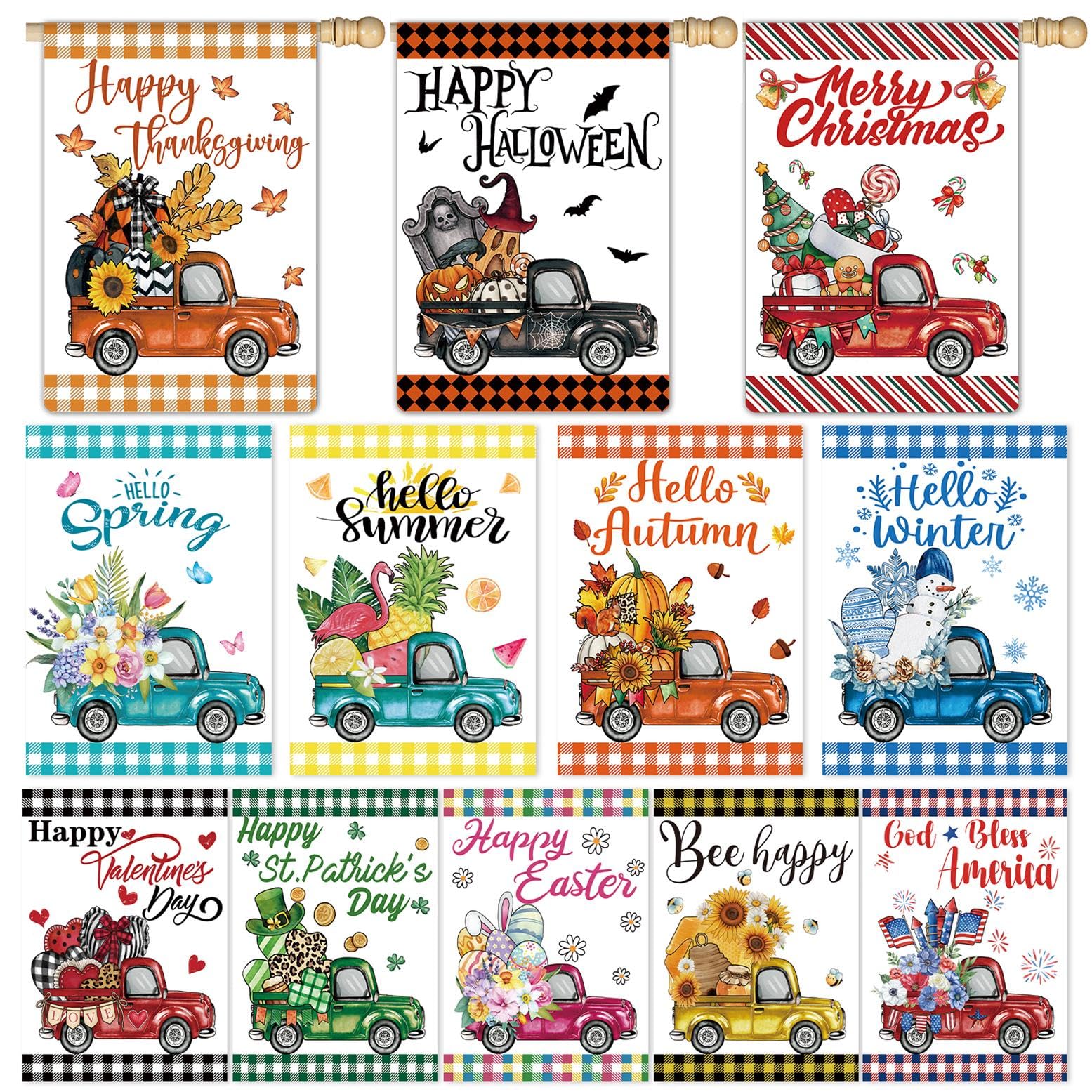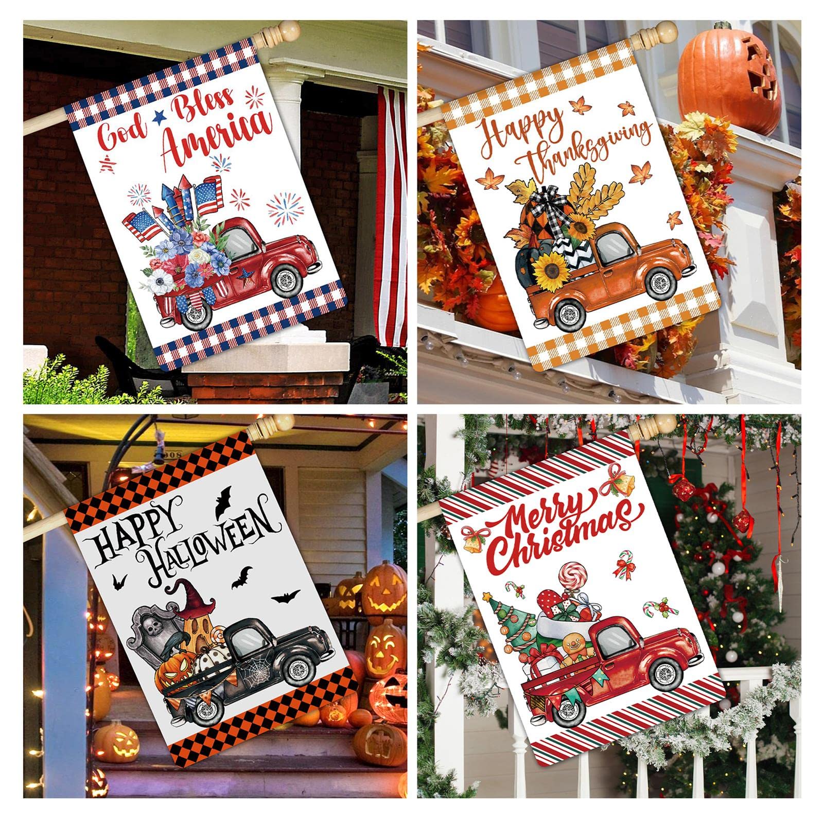【Wohnkultur】Unsere saisonalen Lkw-Hofflaggen sind perfekt für Garten, Terrasse, Veranda, Deck, Diele, Balkon, Hinterhof und Rasen., ., ., Dekorieren Sie Ihren Außenbereich mit dieser Gartenflagge, um einen charmanten Ort zu machen und unvergessliche Erinnerungen zu hinterlassen. Patricks Day Gartenflagge, Ostern Gartenflagge, Halloween Gartenflagge, Thanksgiving Gartenflagge, Weihnachten Gartenflagge, Frühling Sommer Sonnenblume Gartenflagge, Frühlingsflagge, Sommerflagge, Herbstflagge, Winterflagge. 【Materialien】Zwei Schichten Sackleinen, wetter- und lichtbeständig, damit sie für viele Jahreszeiten fliegen können. 【Langlebig und hochwertig】 Diese Vintage-LKW-Gartenflaggen bestehen aus strapazierfähigem Jute-Stoff, die hochfesten Doppelnähte sorgen dafür, dass sie nicht leicht reißen. (nur Gartenflagge, Flaggenständer nicht im Lieferumfang enthalten) Anlass: alle Jahreszeiten und Feiertage. Willkommen Gartenflaggen-Design: Unsere LKW-Willkommens-Gartenflaggen sind mit klassischen saisonalen Elementen gestaltet, Vintage-LKW mit Feiertagsdekorationen, schwarz-weißem Büffelkaro-Hintergrund, wodurch Ihr Haus beim Aufstellen im Hof voller Urlaubsatmosphäre wird. Größe: kleine Gartengröße (30,5 x 45,7 cm) 【Saisonal Truck Flag 12er Set】Valentinstag Gartenflagge, St. Gartenflaggen, 30,5 X 45,7 Cm, Vertikale Doppelseitige Gartenflagge, Giraffe, Auto, Kleine Gartenflaggen, Dekorative Flagge, Garten, Hof, Flagge Für Den Außenbereich, Urlaub Im Freien Willkommensgartenflaggen Design: Unsere Willkommensflaggen sind mit einem schwarzen LKW entworfen, der Herbst Winter Halloween Urlaubselemente wie Kürbis Geist, schwarz weißes Büffelkaro als Hintergrund beladen und Ihr Haus voller Urlaubsatmosphäre macht, wenn Sie im Hof platzieren 【Holiday Truck Buffalo Plaid Gartenflaggen】Kommt mit 12 Stück 30,5 x 45,7 cm doppelseitigen rustikalen LKW-Gartenflaggen-Set für jeden wichtigen Urlaub, einschließlich Valentinstag Gartenflagge, St. Willkommensgartenflaggen-Design]Unsere Willkommensflaggen sind mit rustikalem, goldenem LKW entworfen, der Danksagungselemente wie Kürbisse und Truthahn lädt, wodurch Ihr Haus beim Aufstellen im Hof voller Urlaubsatmosphäre wird Schöne Einweihungsgeschenke für Ihre Familie, Freunde und Nachbarn Frohe Weihnachten gartenflaggen Draußen Büffelkariert