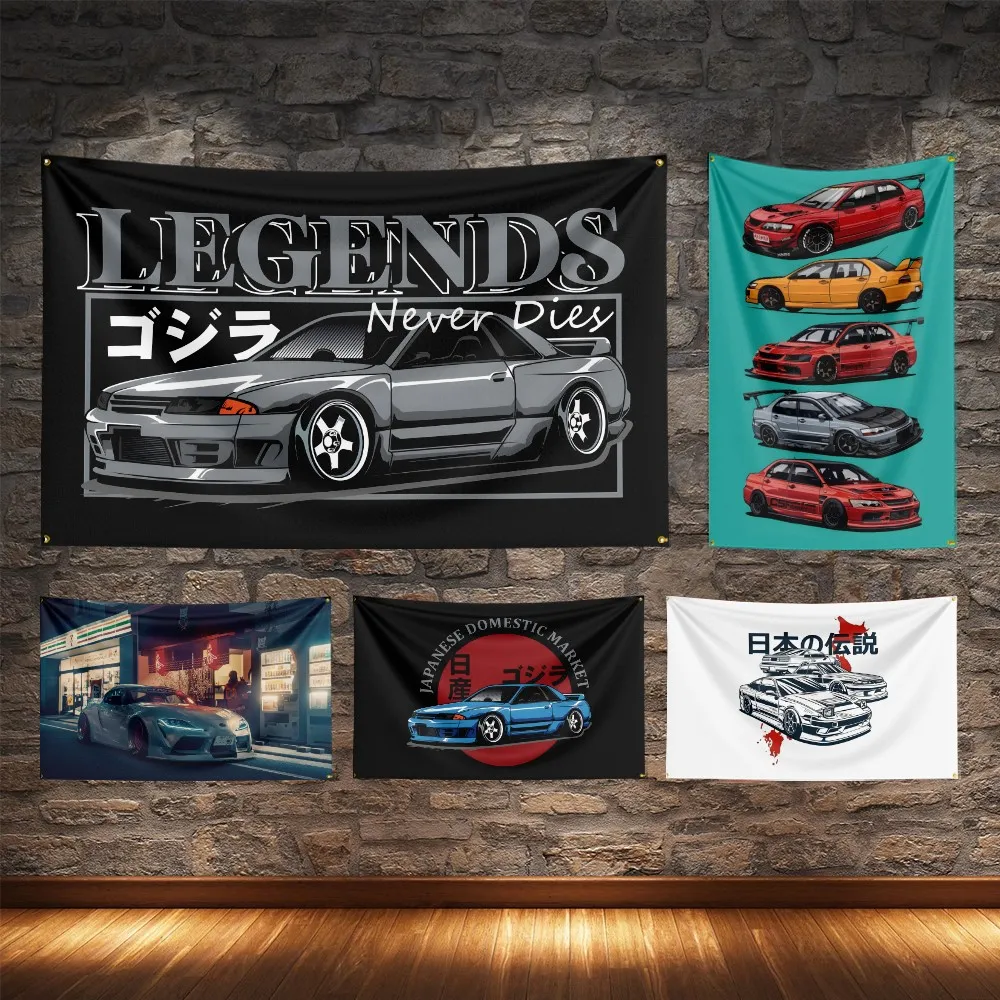 Autoflagge Mit Vier Messingösen, Vintage, JDM GTR Fans, Wandteppich