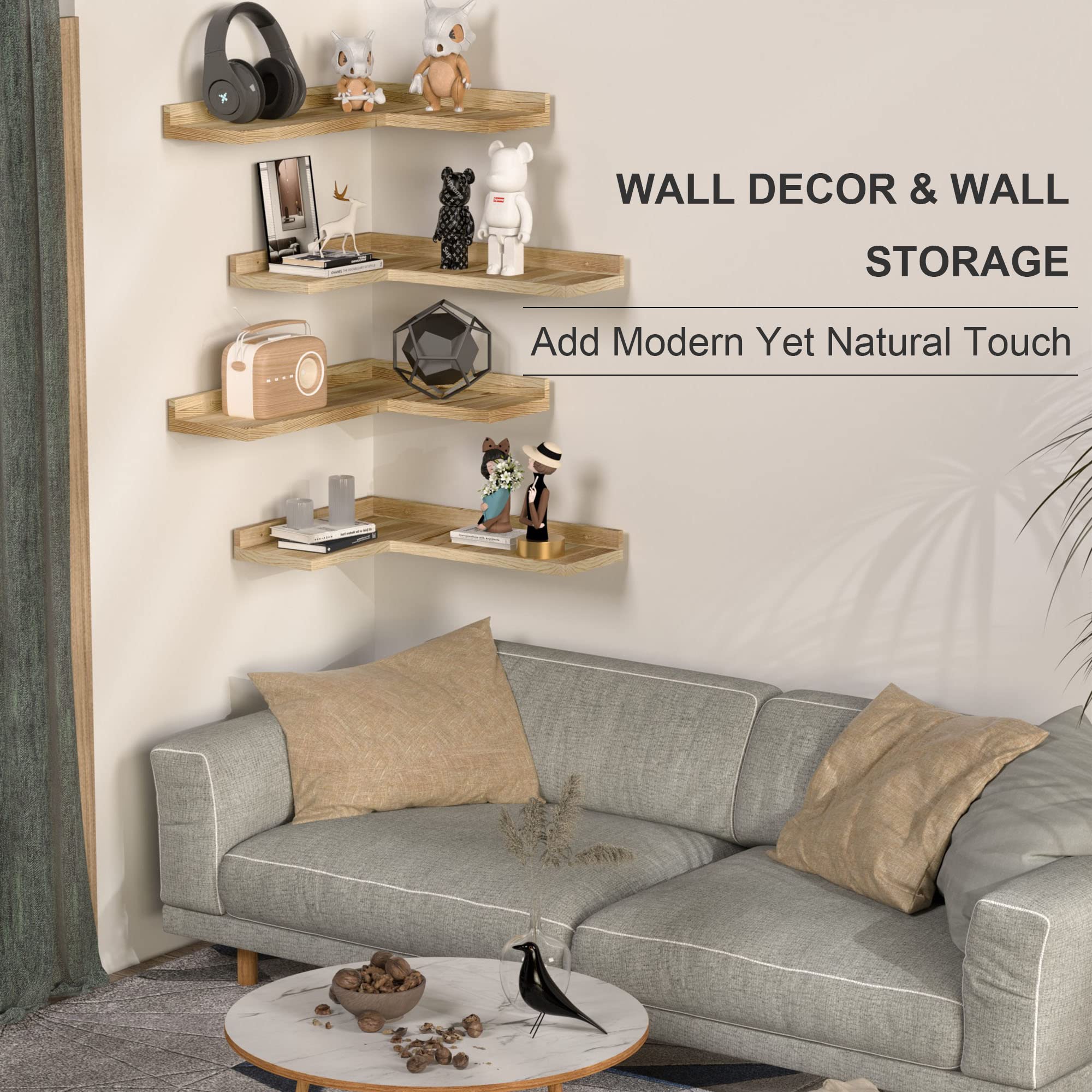 Wandregal Holz 4er Set Schweberegal Hängeregal Bücheregal Wandregal Metall Wanddeko Und Ablage Hängend Regal Aesthetic Wand Deko Modern Für Wände Badezimmer/Schlafzimmer/Wohnzimmer/Küche (Golden