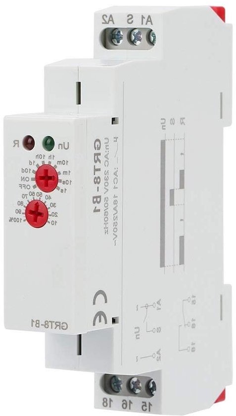 Jadeshay Zeitrelais 230V Verzögerungsrelais GRT8-B1 ini... Ihr zuverlässigster und vertrauenswürdigster Hersteller in China Eigenschaften:1., Dies ist eine einzelne Funktion Ausschalt-Verzögerungsrelais und die Zeitverzögerung können durch Stärkeregler eingestellt werden., 2., Super breite Zeitverzögerung Bereich von 0,1 s - 10 Tage., 3., with AC / DC 12V-240V Betriebsspannung., 4., Relay Arbeitsstatus wird durch LED-Anzeigen angezeigt., 5., With Super kleines Volumen, kann dieses Relais auf 35 mm DIN-Schiene montiert werden. Spezifikation:Funktion: Verzögerung OFFNennversorgungsspannung: AC / DC 12-240V (50-60 Hz)Einspeiseklemme: A1-A2Leistungsaufnahme: AC 0., 09-3VA / DC 0., 05-1., 7WEinstellen Methode: KnopfBetriebsanzeige: Grüne LEDVerzögerungsbereich: 0,1 s-10 Tage, in der Regel offen, normalerweise geschlossenEinstellgenauigkeit: 10%Ausgangskontakt: 1 x SPDT 16A / AC1, 250VAC / 24VDCMinimale Schaltleistung: 500 mWAusgangsrelais Anzeige: rote LEDMechanische Lebensdauer: 1x107Reset-Zeit: Max 200msArbeitstemperatur: -20 ℃ ~ 55 ℃Montageart: 35 mm DIN-SchieneMontagehöhe: ≤2000mUngefähres Gewicht. Zeitrelais 12v Jadeshay Zeitrelais 230V Ausschaltverzögerung GRT8-B1 Mini-Zeitrelais Mit Ausschaltverzögerung Timer Relais DIN-Schienentyp AC 220V Stromstoßschalter 230v Super-Weitzeitverzögerung Bereich von 0,1 s - 10 Tage. 74g / 2,6 UnzenPaketliste:1 * Verzögerungs-Zeitrelais Dies ist eine einzelne Funktion Ausschalt-Verzögerungsrelais und die Zeitverzögerung kann durch Stärkeregler eingestellt werden.