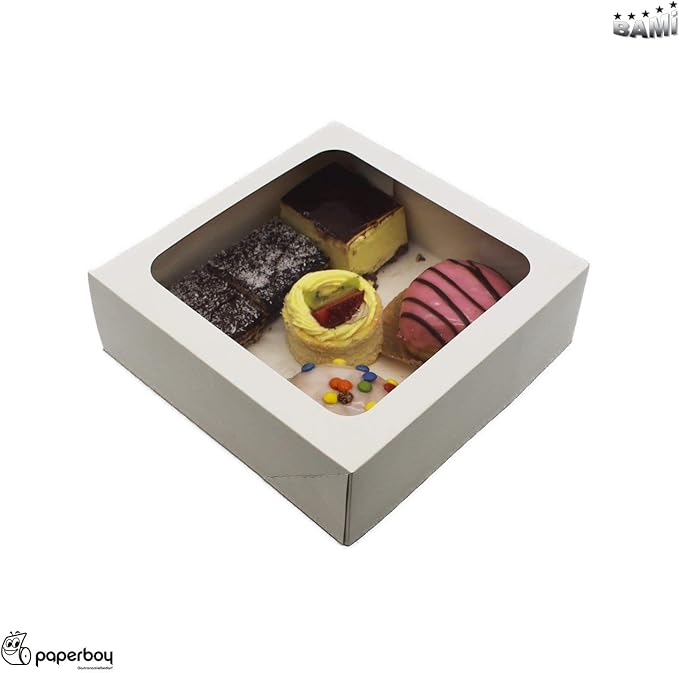 BAI 25 Stück Konditorei Box Gebäckkarton Kuchenbox, L- 230x160x90