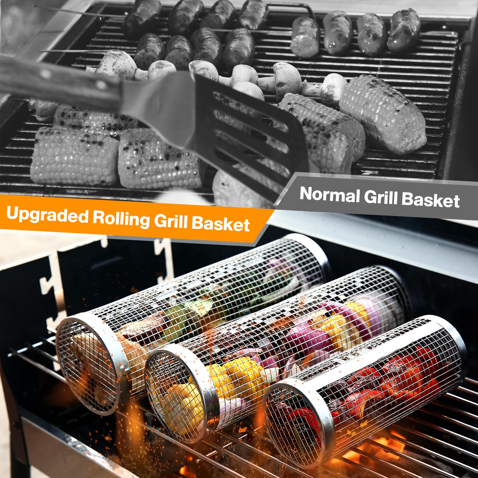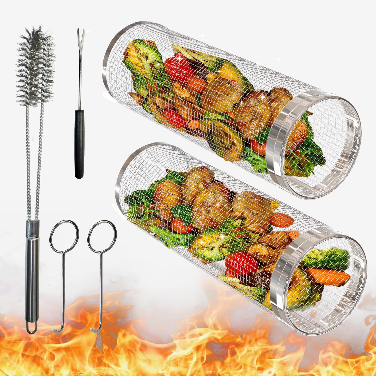 BBQ Rollgrillkorb, Edelstahl-Grillkäfig, Rundes BBQ-Grillnetz Für Gemüse- Pommes-Fisch, Tragbares Barbecue-Kochgrillnetz Günstig Kaufen - Preis, Kostenloser Versand, Echte Bewertungen Mit Fotos