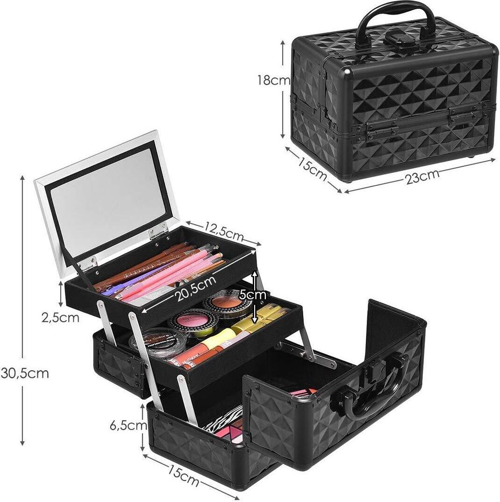 Packen Sie einfach alles, was Sie brauchen, in diesem praktischen Kosmetikkoffer ein und nehmen Sie ihn überall mit. Abmessungen: 37 x 24 x 35 cm (L x B x H) Farbe: Silber/Schwarz/Rosa Unser Kosmetikkoffer bietet eine effektive Lösung, um Ihre Kosmetika an einem Ort ordentlich aufzubewahren Zusätzlich verfügt er über einen Tragegriff, mit dem Sie ihn überall hin mitnehmen können! Aus Holz, ABS-Blech und Aluminium gefertigt, wird dieser Kosmetikkoffer Ihre Kosmetik problemlos aufbewahren und in perfektem Zustand halten Dieser Kosmetikkoffer verfügt über 2 Ebenen und die obere Ebene ist nach außen ausziehbar und bietet ausreichend Stauraum für Ihre Kosmetik- und Schönheitsprodukte. Make Up Koffer KOSMETIKKOFFER PILOTENKOFFER BEAUTYKOFFER FRISEURKOFFER SCHMINKKOFFER Schminkkoffer Damen Packen Sie einfach alles, was Sie brauchen, in diesem praktischen Kosmetikkoffer ein und nehmen Sie ihn überall mit! Aus Holz, ABS-Blech und Aluminium gefertigt, wird dieser Kosmetikkoffer Ihre Kosmetik problemlos aufbewahren und in perfektem Zustand halten Material: Aluminium, ABS und Holz Kosmetikkoffer Schminkkoffer 35×29×45 cm Golden Aluminium lieferbar - in 5-6 Werktagen bei dir 63,38 € inkl. MwSt. zzgl Farbe: Rosa;Material: Aluminium, ABS und Holz;Abmessungen: 37 x 24 x 35 cm (L x B x H) Truckbox D028 Werkzeugkasten, Alukiste, Transportbox, Alubox, Alukoffer