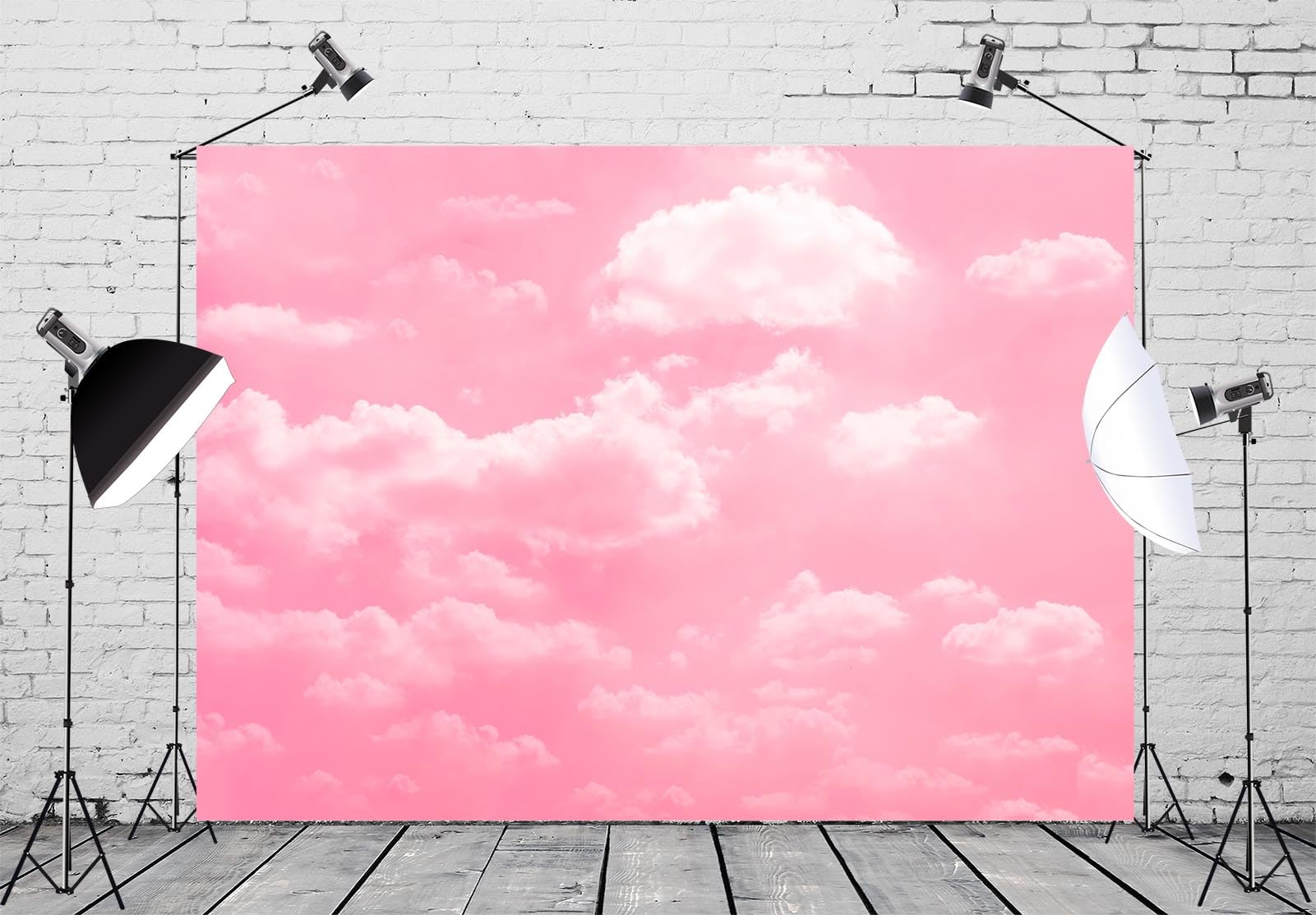 BELECO 2,4 X 1,8 M Stoff Rosa Himmel Weiße Wolken Hintergrund Klar Bewölkter Himmel Sonnenschein Hintergrund Für Neugeborene Kinder Mädchen Geburtstag Babyparty Party Dekorationen Banner Fotostudio