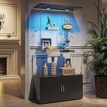 BELLEZE Beleuchteter 3-seitiger Glasvitrine Mit Türen Und Regalen Aus