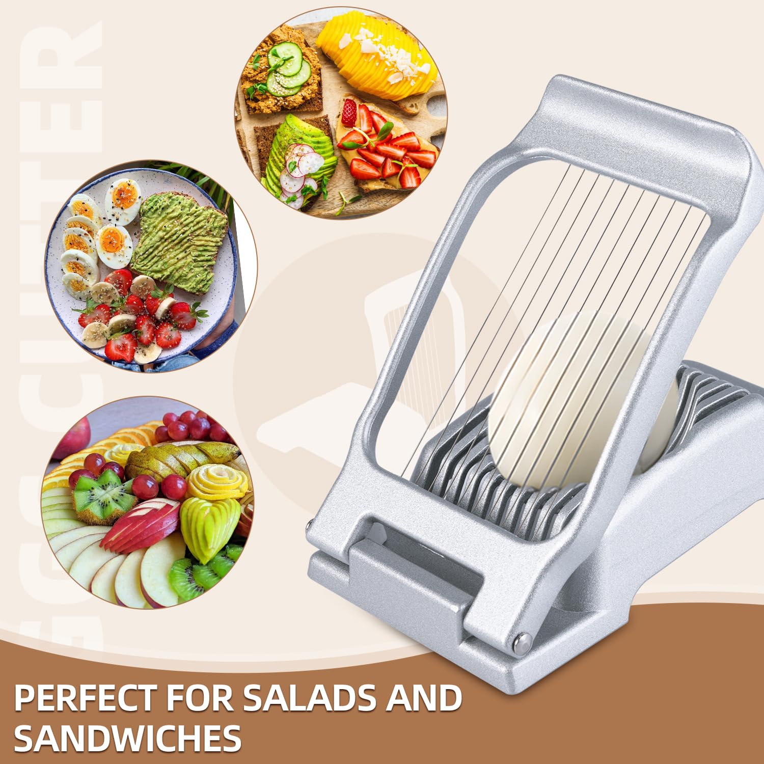 BIBURY Eischneidewerkzeug, Eierschneider Für Hartgekochte Eier, Robuster Aluminium Schneider Für