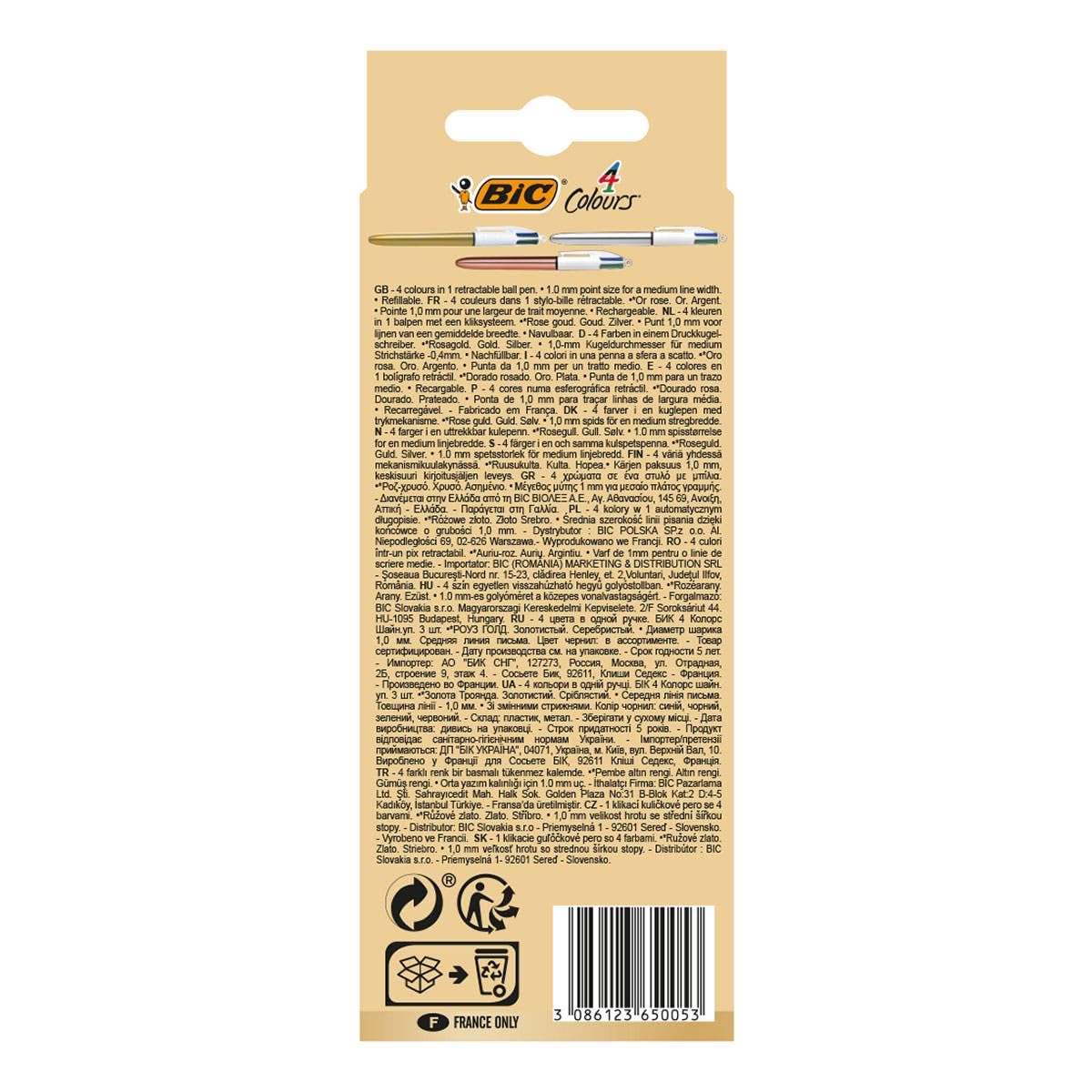 BIC 4 Farben Kugelschreiber Set 4 Colours Shine, 3er Set Mit Gold