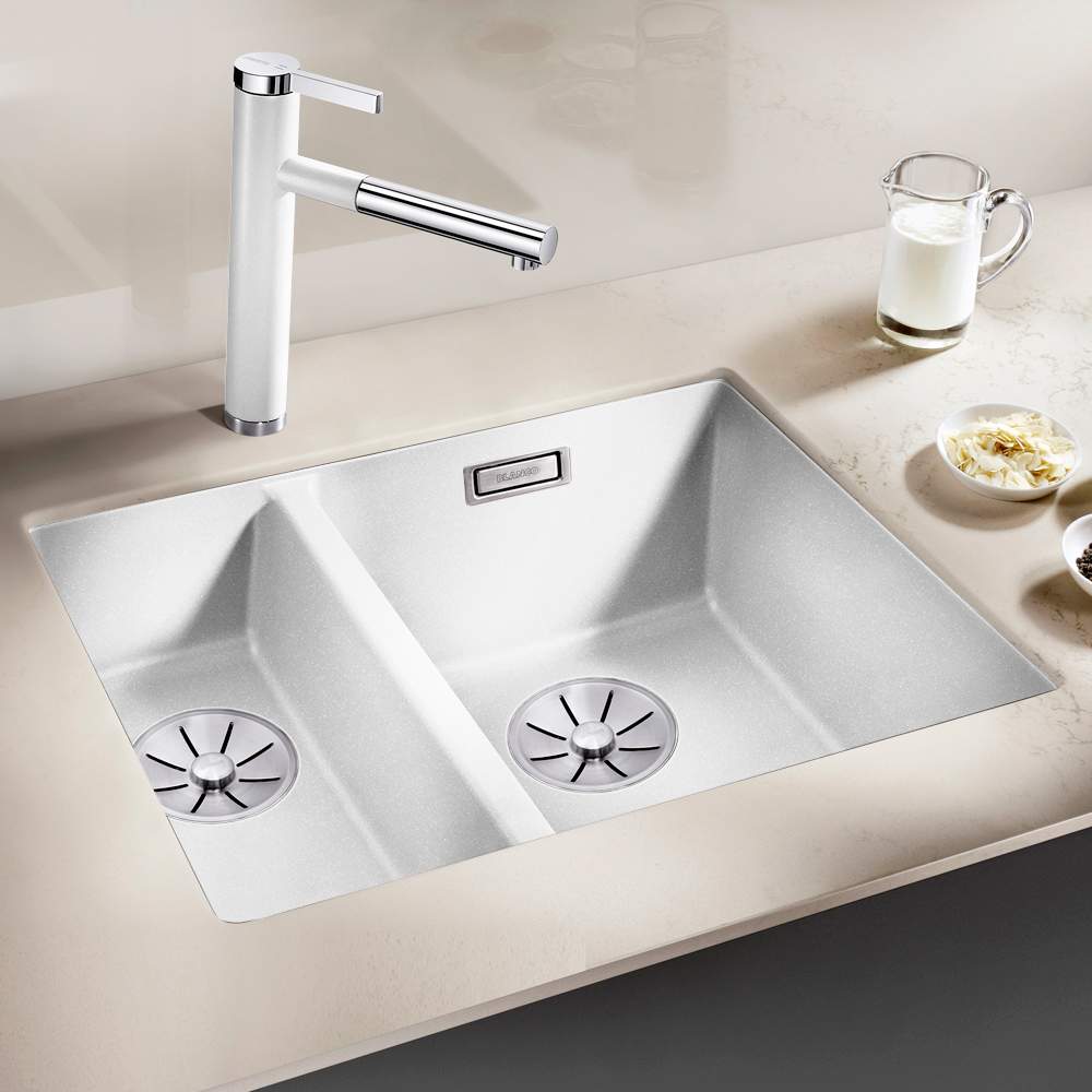 Außenmasse: 555 x 460 mm; Beckengrößen: 340 x 400 x 190 mm, 160 x 400 x 130 mm 1½ Becken-Unterbauspüle aus SILGRANIT® PuraDur®; passend für Unterschränke ab 60 cm; irreversibel; großes Becken rechts; kratzfest; bruchfest; farbbeständig; säurebeständig; lebensmittelecht; temperaturbeständig; Farbe: muskat Sink Catalogue BLANCO SUBLINE 340/160-U Spüle (Anthrazit, SILGRANIT) - Unterbau, 2 Becken, Verdeckter Überlauf Blanco Etagon 500-u BLANCO SUBLINE 340/160-U Silgranit Spüle