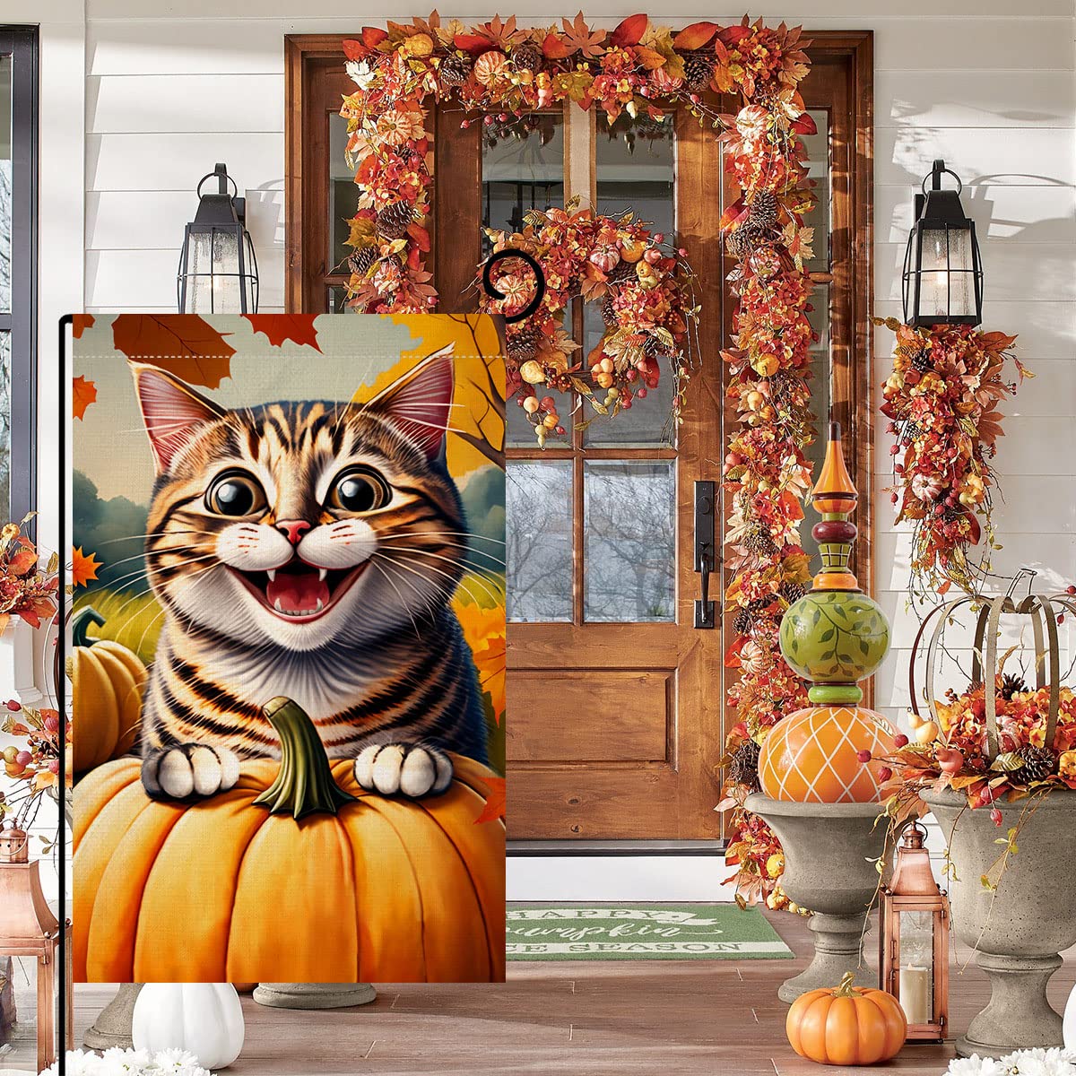 BLKWHT Herbstkatze, Blumenflagge, 30,5 X 45,7 Cm, Vertikal