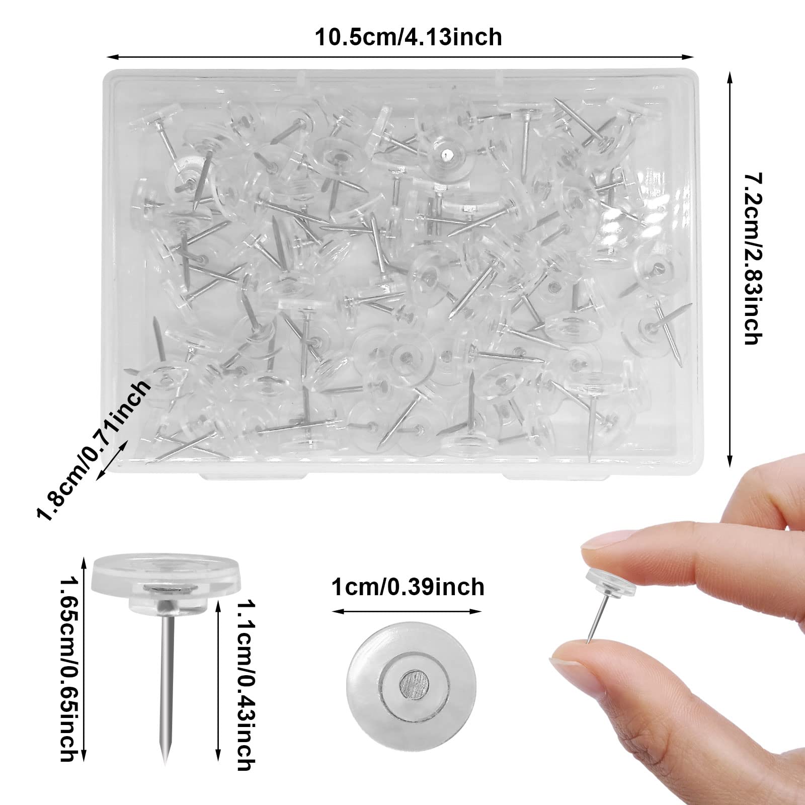 BLMHTWO 100 Stück Transparente Reißzwecken,Reißnägel Flacher Kopf Mit Transparenter Aufbewahrungsbox 16mm Reiszwecken Mit Kopf Für WandbehäNge Poster PinnwäNde FotowäNde