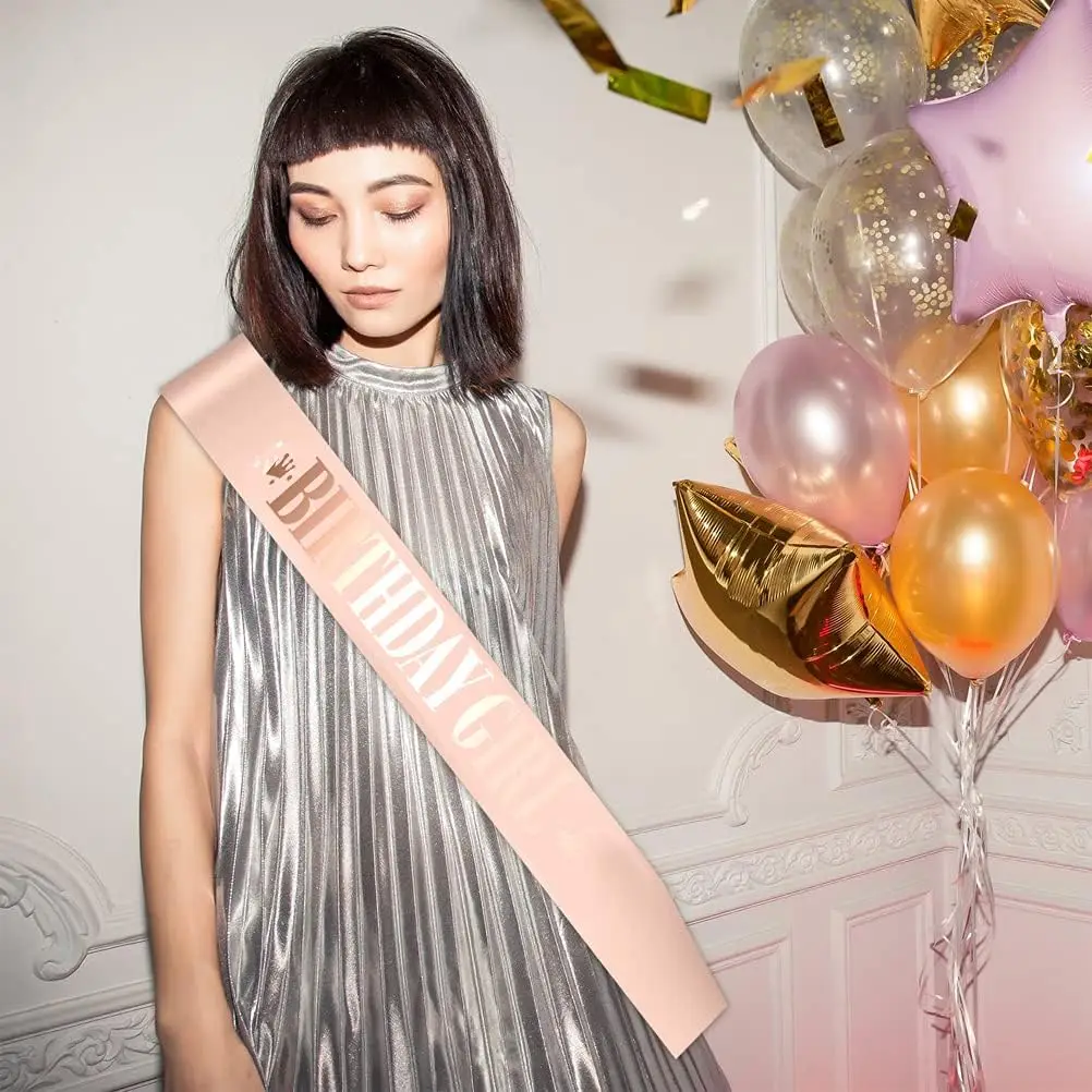 BOXOB Pinkfarbene Geburtstagsschärpe Mit Schleife Für Mädchen, Satin