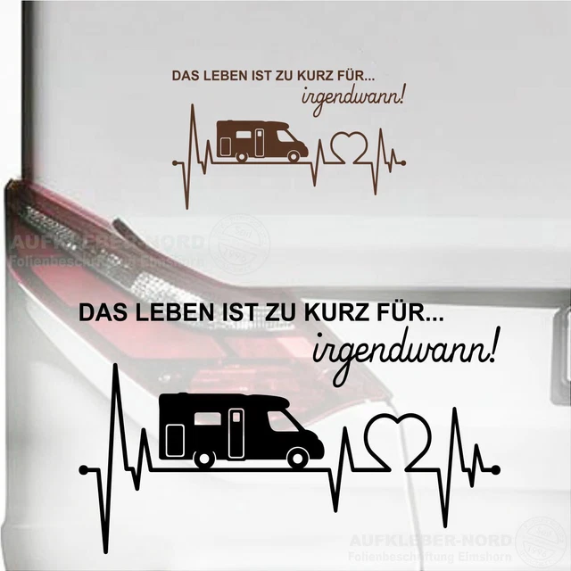 HERZSCHLAG BUS 30CM Das Leben Spruch B063 Autoaufkleber Camper Caravan