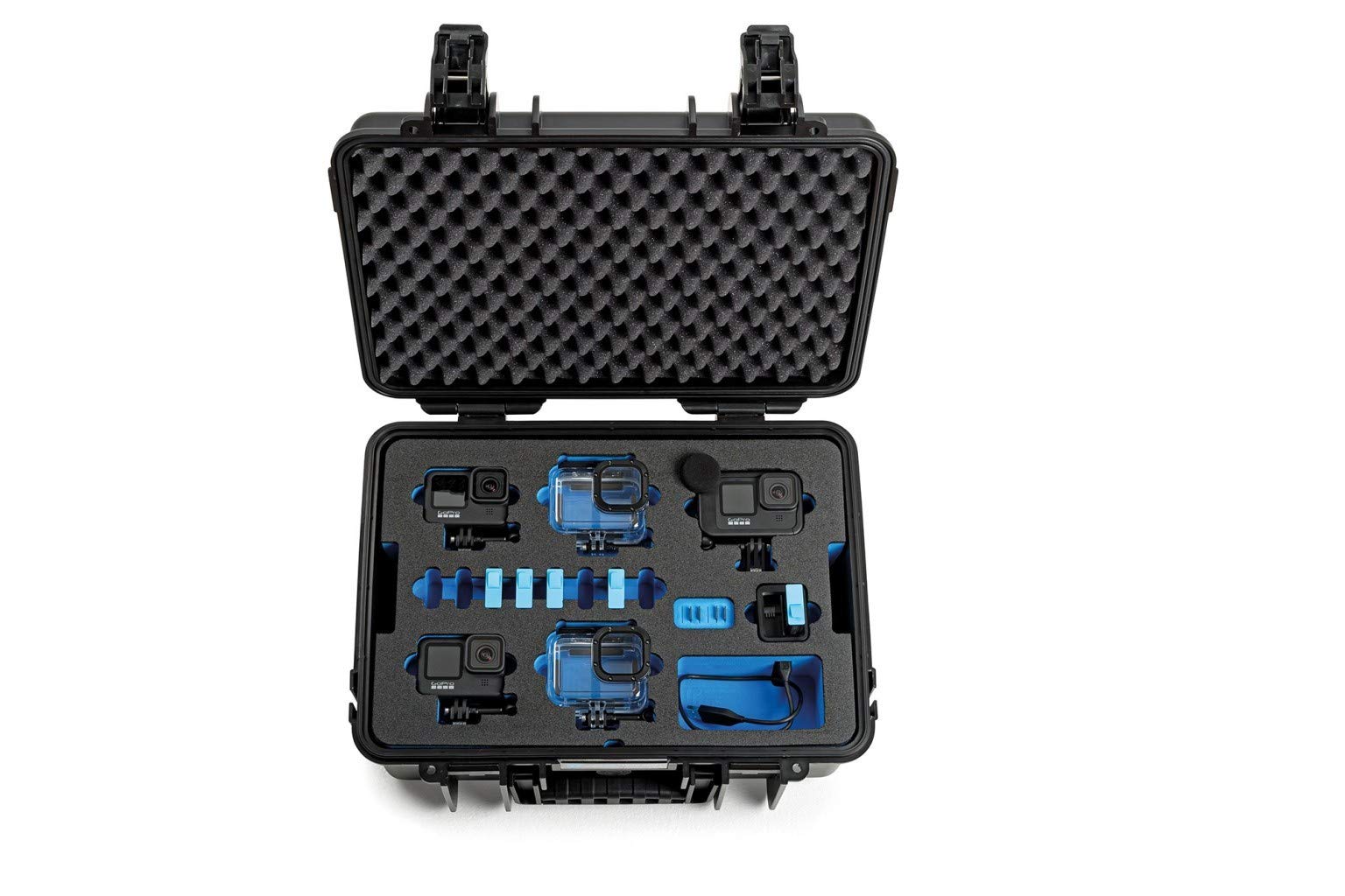 Marke. B&W International ; Grad der Wasserbeständigkeit. Wasserdicht ; Farbe. Schwarz ; Material. Polypropylen (PP) ; Produktabmessungen. 22T x 27B x 11H cm Features • Extrem stabiler Koffer: Gehäuse aus Polypropylen (PP) • nach MIL-STD-810, STANAG 4280, DEF STAN 81-41 und ATA 300 zertifiziert / UN-Zulassung auf Anfrage möglich • Flugtauglich: automatisches Druckausgleichsventil • stabil, staubdicht, wasserdicht nach IP67 • temperaturstabil von -30° C bis +80° C • Namensschild • stapelbar • zwei Ösen für Vorhängeschlösser (Ø 4,5 mm) • gummierter Tragegriff • zwei Schnappschlösser für maximalen Schutz Der Koffer beinhaltet: • eine schwarz/blaue Hartschaumeinlage im Boden • ein Noppenschaum im Deckel Abmessungen und Gewichte • Innenmaße: 250 x 175 x 95 mm • Außenmaße: 270 x 215 x 105 mm • Gewicht ohne Verpackung: 0,75 kg • Volumen: 4,1 Liter Optionales Zubehör (nicht im Lieferumfang enthalten) • Würfelschaum (Art., Nr., SI/1000) • Facheinteilung (Art., Nr., RPD/1000) • Schultergurt (Art., Nr., CS/500) • Deckeltasche (Art., Nr., LP/1000) • Einbaurahmen (Art., Nr., PF/1000) • Netztasche (Art., Nr., MB/1000) Ein Sturz wird die GoPro sicher überstehen. ALLES MUSS MIT Eine GoPro ist nicht günstig und daher sollte diese zusammen mit dem Zubehör für den Transport bestmöglich geschützt werden.Das outdoor. Aufmerksam zuhören, verstehen und daraufhin maßgeschneiderte, zuverlässige und ästhetische Produkte in herausragender Qualität entwickeln, ganz nach den individuellen Anforderungen unserer Kunden – das ist unser Ziel. Outdoor-Koffer Type 4000, schwarz, leer, IP67, Polypropylen SCHLAG UND STOßFEST: Es kann immer mal passieren, dass einem etwas aus der Hand fällt. Durch die passgenaue Hartschaumeinlage in unserem Koffer ist deine GoPro bestens vor Erschütterungen geschützt. Dank der charge-in-case Funktion besteht die Möglichkeit, die GoPro im Koffer zu laden. GoPro Hero 9 Inlay gelb Dafür arbeiten wir mit großer Motivation und maximaler Leidenschaft. Gopro Hero 12 Unterwassergehäuse B&W Transportkoffer Outdoor - Typ 5000 Orange - Mit Würfelschaum Go Pro Tasche case 1000 mit Inlay für eine GoPro Actioncam bietet trotz seiner kompakten Größe Platz für deine GoPro und zusätzlichem Equipment. Extrem robust und maximal belastbar! Dieser Koffer ist schlag- und stoßfest. EGAL WO: Dieser Koffer schützt deine GoPro vor Schnee, Hagel und Regen, auch Temperaturen von -30°C bis +80°C sind kein Problem. Der Outdoor Transportkoffer 3000 (PP.117) mit Inlay für drei GoPro Actioncams bietet dank seiner interessanten Größe Platz für deine GoPro und zusätzlichem Equipment