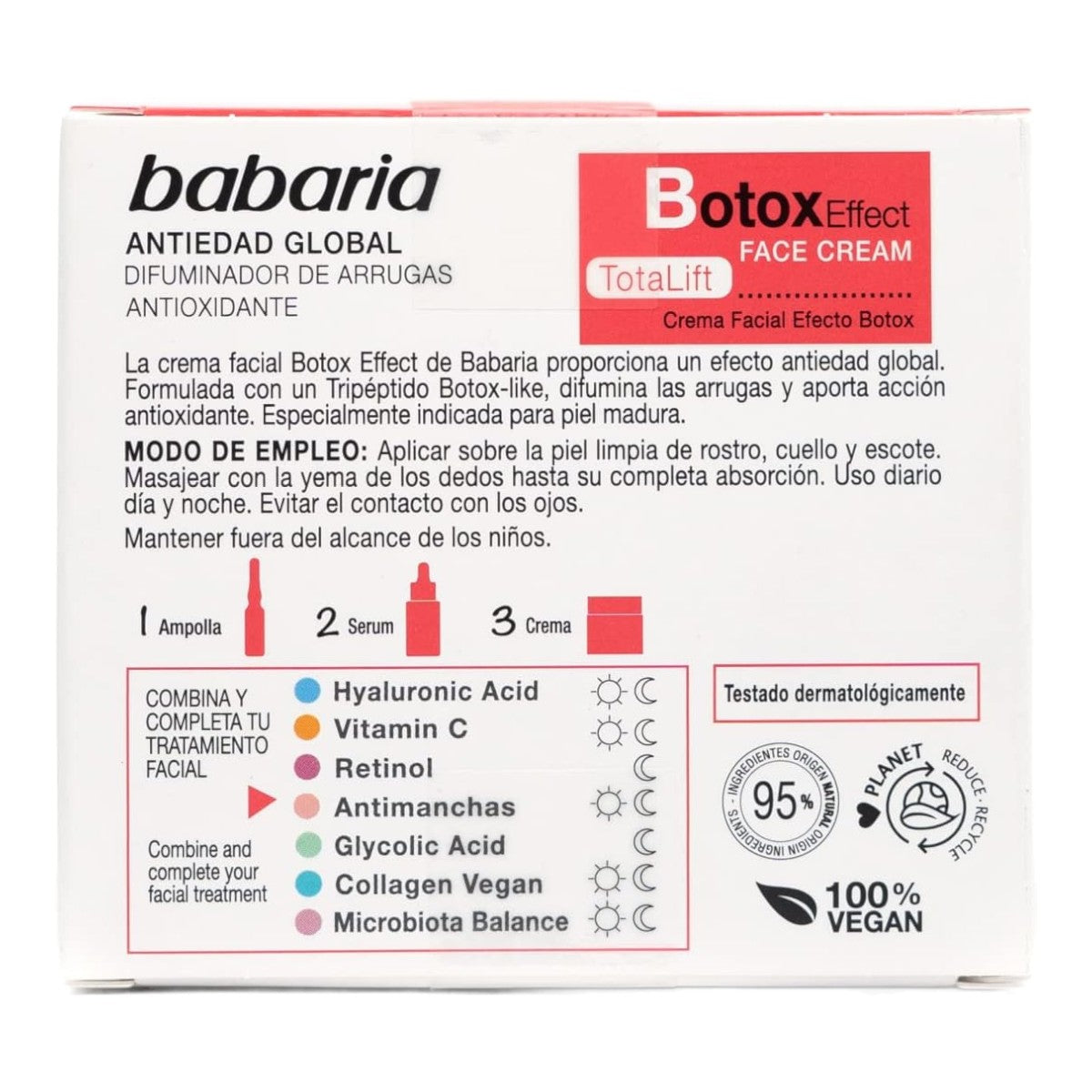 Mit diesen 100% veganen Ampullen werden Sie eine verjüngende Wirkung auf Ihrer Haut bemerken. Botox Effect Total Lift Ampullen mit verjüngender Behandlung, die feine Linien glättet und das Gesicht entspannt. Noch nicht von Babaria gehört? Wir sind Gesichts-, Körper- und Haarkosmetik. Ideal für reife Haut Tägliche Anwendung Tag und Nacht., Zur topischen Anwendung., Nicht injizierbar. Außerdem sind sie dermatologisch und augenärztlich getestet Dieses 100% vegane Produkt ist dermatologisch und augenärztlich getestet. Botox Creme Babaria Btoxeffect Total Lift Serum 30ml Babor Set Ampullen Janno®med Botox-Like SYN-AKE Ampullen 7x2ml Unsere Mission ist es, sich um die Menschen und den Planeten zu kümmern, und unsere Vision ist es, den Massenmarkt anzuführen und jedem Zugang zu hochwertiger und gesunder Naturkosmetik zu bieten. Botox Effect Total Lift Ampullen mit verjüngender Behandlung, die feine Linien glättet und das Gesicht entspannt. Ideal für reife Haut. Mit diesen 100% veganen Ampullen werden Sie eine verjüngende Wirkung auf Ihrer Haut bemerken. Außerdem sind sie dermatologisch und augenärztlich getestet Tägliche Anwendung Tag und Nacht., Zur topischen Anwendung., Nicht injizierbar Wirkstoff-Ampullen Collagen Lift Effect » -24% unter UVP