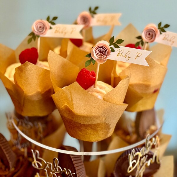Baby In Bloom Cupcake Toppers, Frühling Baby Shower Cup Cake Topper Vorlagen, Druckbare Dessert Toppers, Baby In Bloom Cupcake Topper Dekor