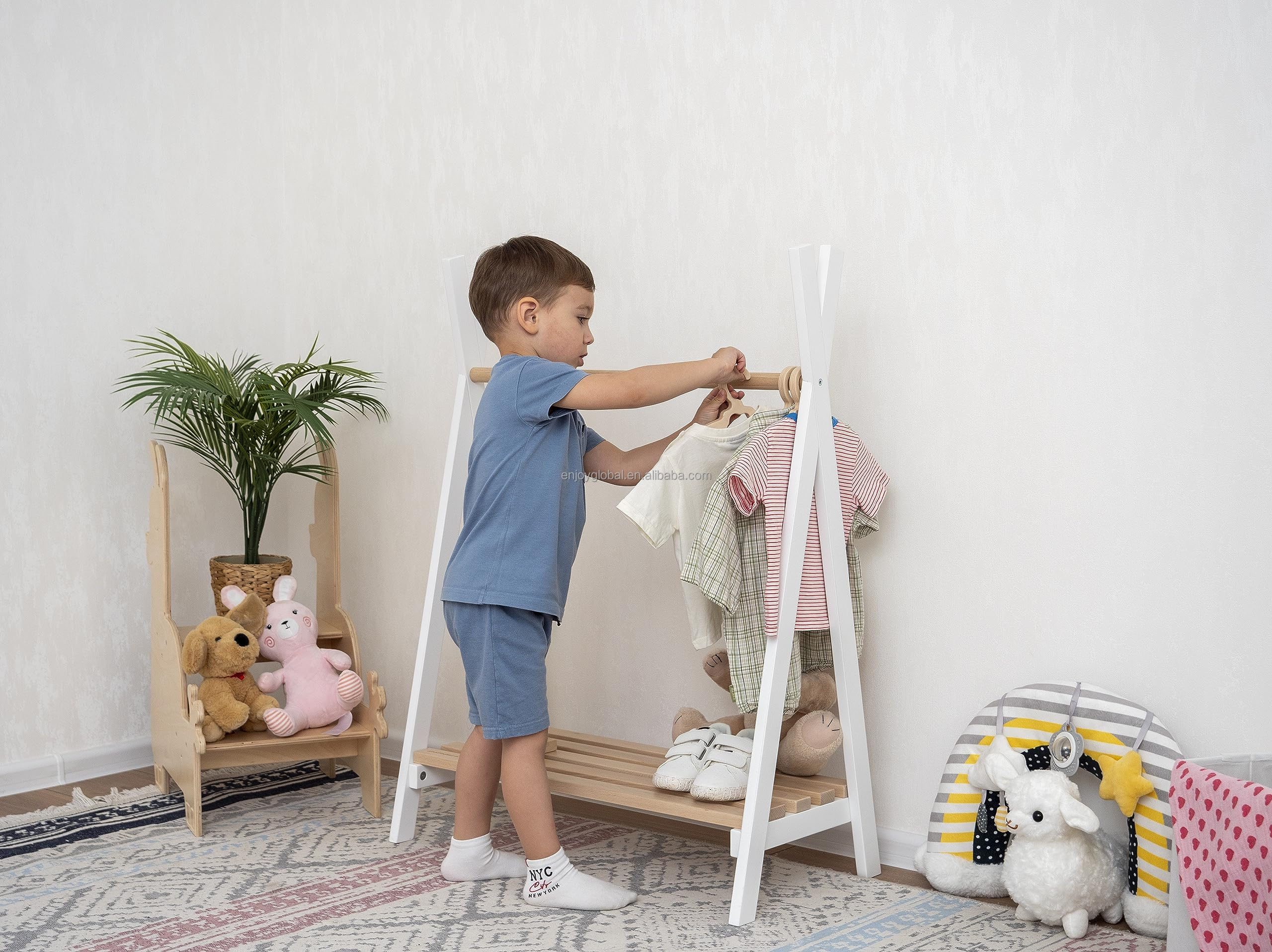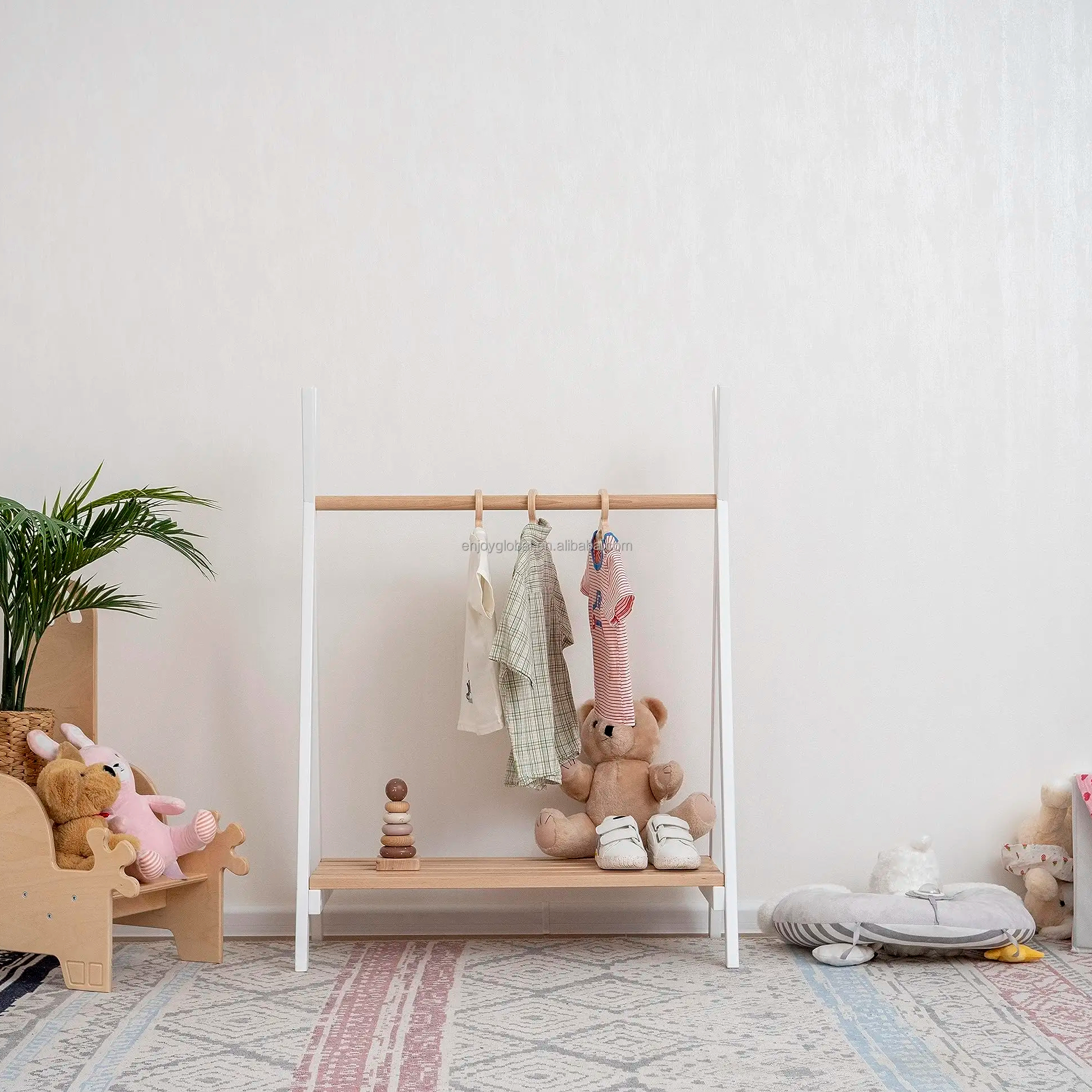 Kinder-Kleiderständer Mit Aufbewahrungsregal, Holz-Baby-Kleiderbügel, Kinder -Kleiderständer, Baby-Kleiderständer, Kleidung, Organizer Zum Aufhängen Von Baby-Haustier-Puppen, 74x50x20.5x20.8 Cm
