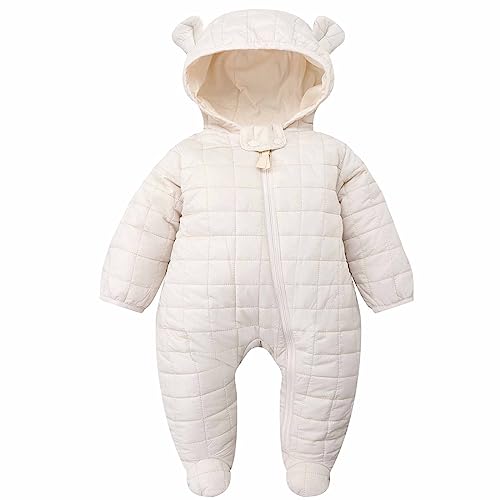 Baby Schneeanzüge Winter Overall Kapuzenmantel Winter Strampler Fleece Overall Mit Fuß Für Babys Neugeborene Kleinkind Mädchen Jungen Warm Jumpsuit Overall Kälteschutz Für 0-12 (01-Beige, 0-3 Months