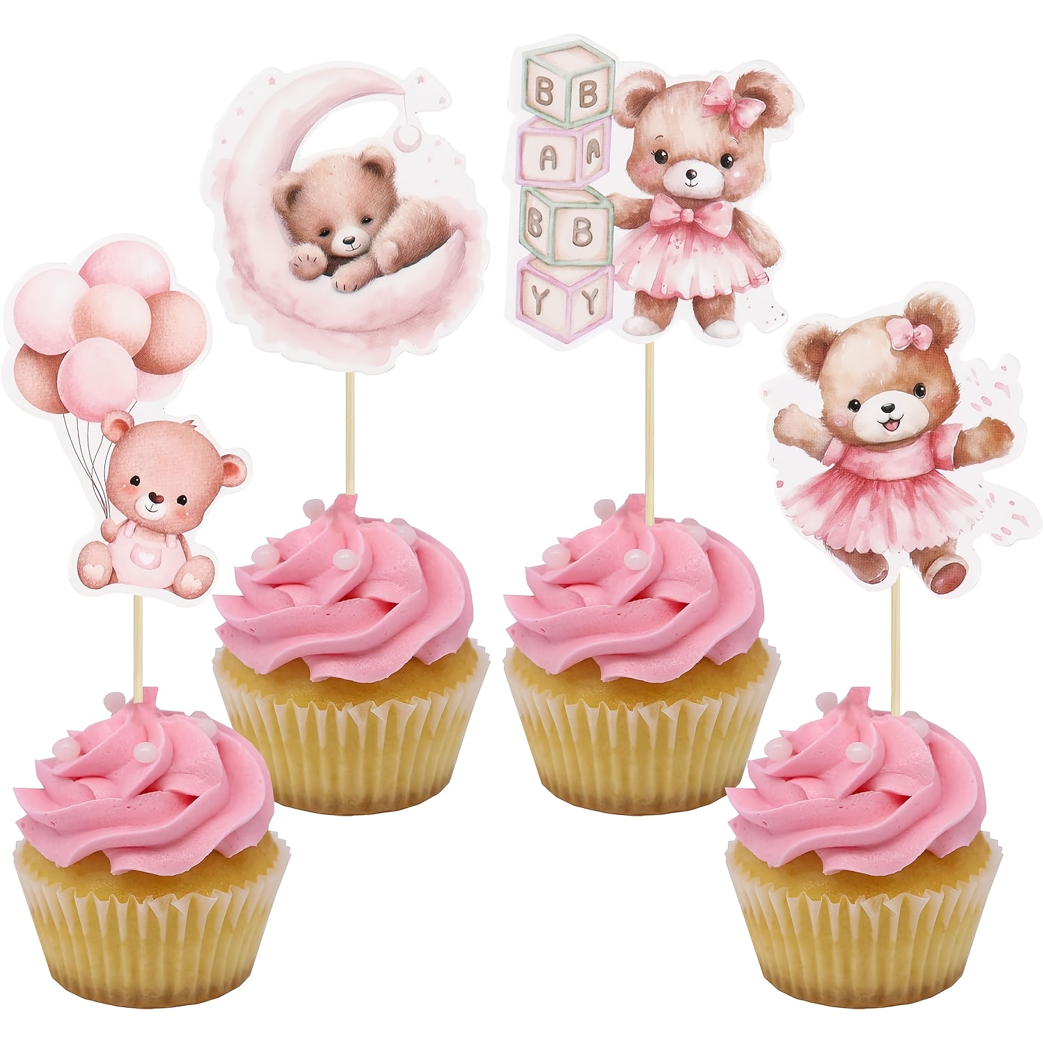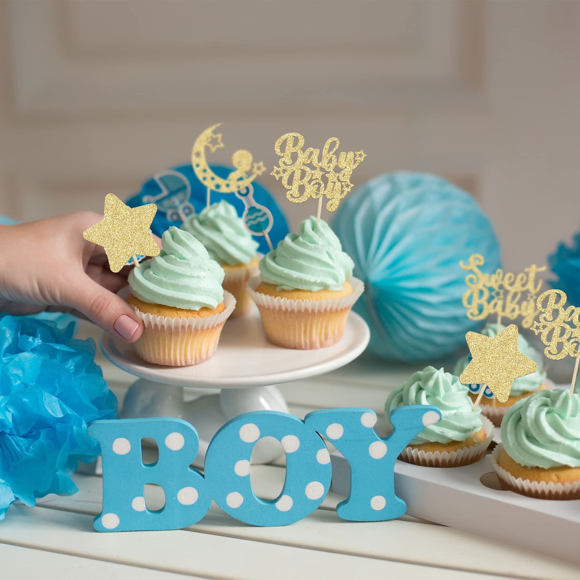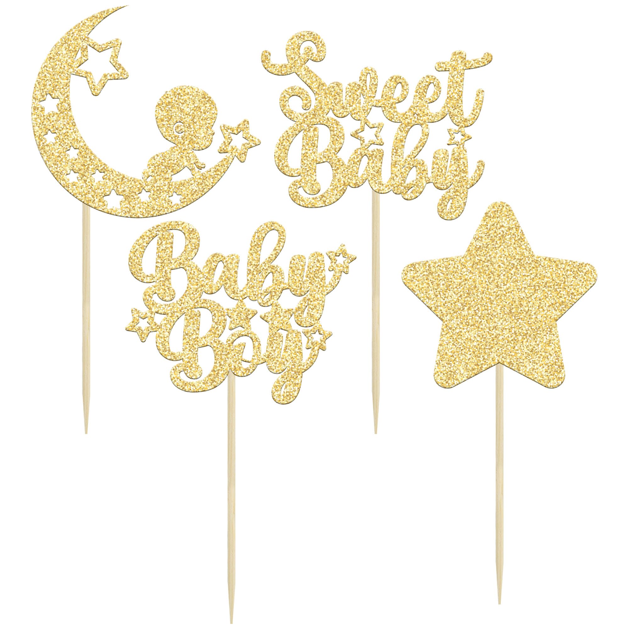 24 Stück Babyshower Mädchen Cupcake Topper Glitzer Mond Stern
