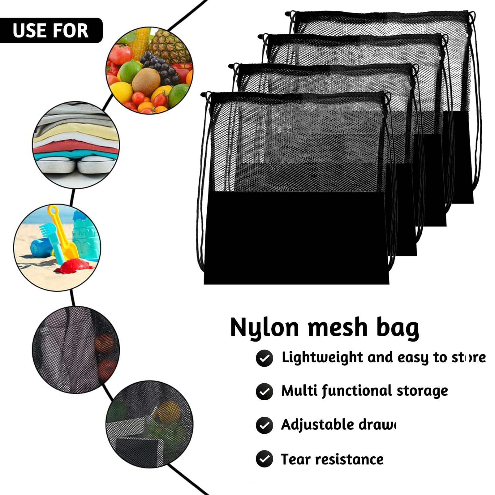 Luxiremi Mesh Bag Drawstring Storage Backpack Black Mesh Beach Bag Mesh
