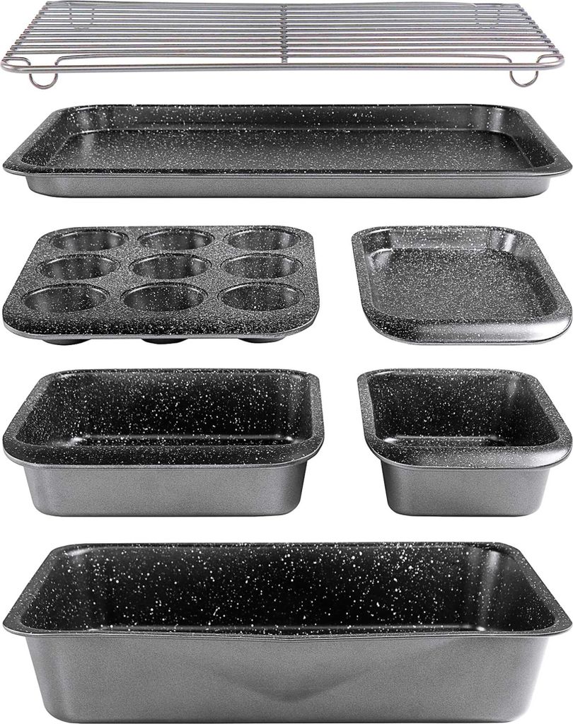 Ideal für Anfänger und erfahrene Bäcker Karbonstahl-Konstruktion: Hergestellt aus 57 % verdicktem Karbonstahl für dauerhafte Haltbarkeit, dieses Backformen-Set ist PTFE-, PFAS- und PFOA-frei. Fortschrittliche Keramikbeschichtung: Dieses Set verfügt über eine fortschrittliche Keramik-Antihaftbeschichtung mit einer diamantstrukturierten Oberfläche für hervorragende Lebensmittelfreigabe. Umfassendes Backset: Dieses Backset enthält zwei Backbleche, einen Bräter, eine Muffinform, zwei Kuchenformen, eine quadratische Pfanne und eine Kastenform sowie 3 wichtige Werkzeuge (Backpinsel, Spatel, Löffelspatel) – perfekt zum Backen von Keksen, Kuchen und Familienmahlzeiten Bunte Vielfalt Backform Set für 12 Muffins mit Silikon Einsätzen Es widersteht Verformungen bei Temperaturen bis zu 220 °C und sorgt jedes Mal für perfekte Backergebnisse Pampered Chef Airfryer SHMSHNG Backform Backset,Kastenform,Kuchenform,Keks Torte Brot Mold Set Hier Online Kaufen Bei Baking Set