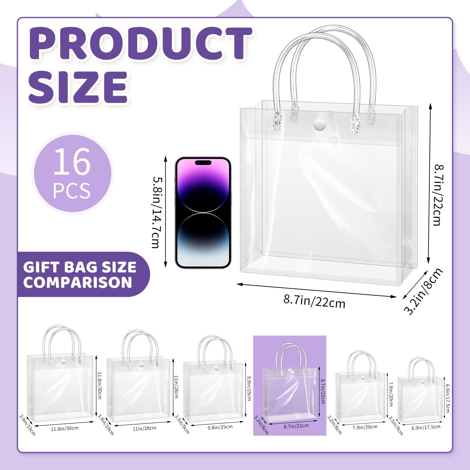 BadenBach 20 Stück Transparente Kunststoff-Geschenktüten Mit Griff, Wiederverwendbar, Transparent, PVC-Geschenkverpackung, Tragetasche Für Einkaufen, Brautparty, Partygeschenk (24.9x30x7.9 Cm