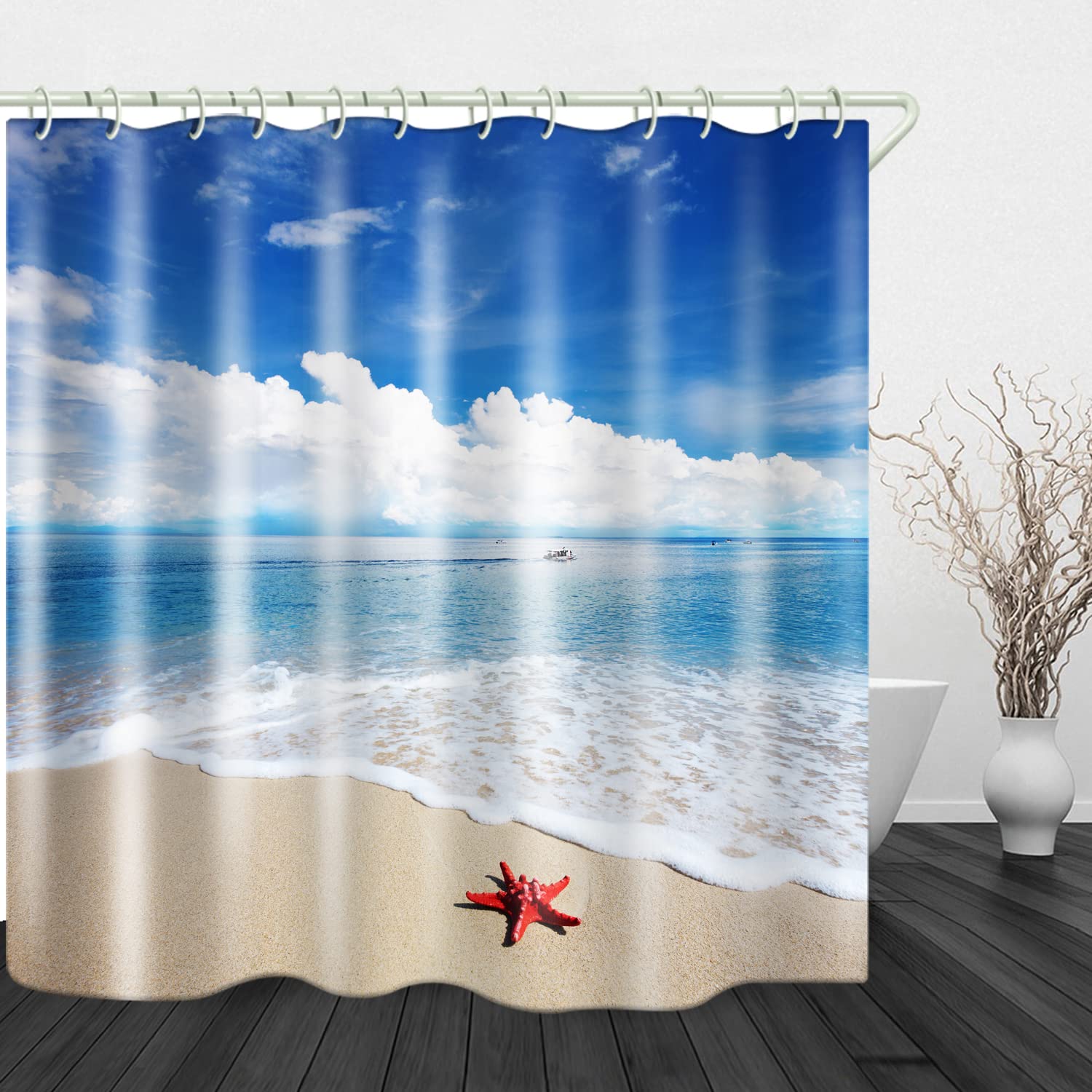 Badezimmer Vorhänge Für Badezimmer Strand Dusche Mit Beschwerungsband Haken Dekoratives Badezimmer Zubehör (Beach 04