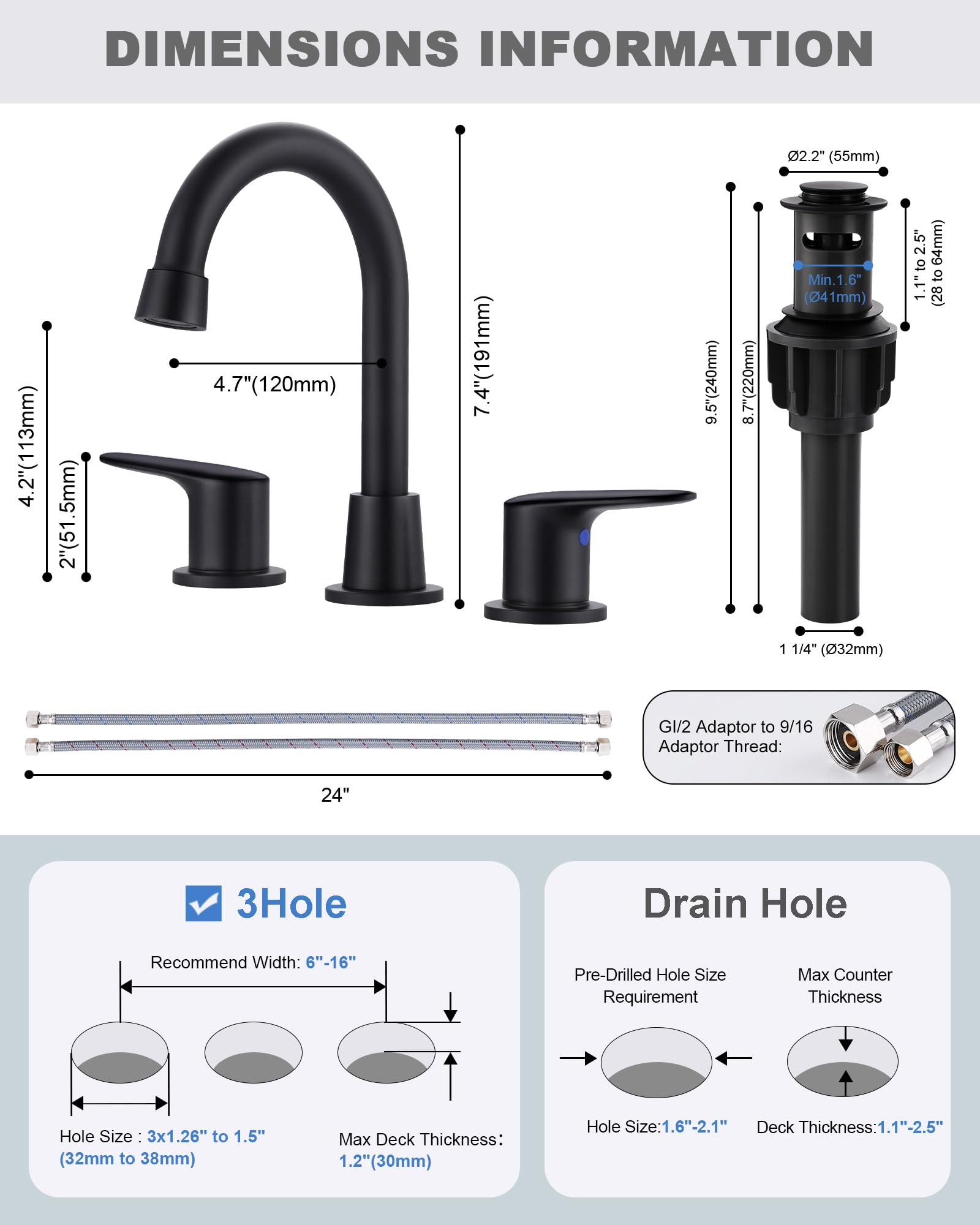 iVIGA Bathroom Faucet with 2 Handles, 3 Holes, Widely Used Bathroom Faucet with Copper Pop Up Drain, Black and Gold, Toilet Faucet, Swivel Spout with Drain Assembly for Breiter Badezimmer-Wasserhahn, 2 Griffe, 3 Löcher, Waschbeckenarmatur mit Pop-Up-Ablaufstopfen, gebürstetes Nickel, Waschtischarmatur mit Versorgungsschläuchen und Ablaufmontage für Toilette, Waschtisch, Camper, 360° drehbar Waschtischarmatur mit Eco-Click und Pop-Up-Exzentergarnitur schwarz IVIGA Breiter Badezimmer-Wasserhahn Mit 2 Griffen, 3 Löchern