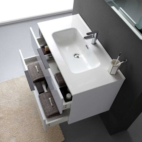Glänzend Weisser Badmöbel 90Cm Mit Schwarzem Griff Und Flachbündiger