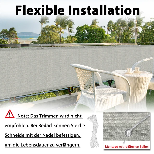 Kein Schrauben oder Bohren erforderlich, einfache Montage mit Kabelbindern oder Seil. Produktmerkmale im Detail: Hinterhof Patio Sichtschutz Sicherheit Kinder und sehr tierfreundlich, Balkon Sichtschutz schützt die Privatsphäre der Tiere und verhindert, dass Tiere schreien. Funktion: Schutz der Privatsphäre, Sonnenschutzmittel, UV-geschützt, winddicht, kühlend, sturmsicher, feuchtigkeitsspendend. Konfiguriere jetzt deinen Balkonsichtschutz nach Maß bei uns und vertraue auf einen passgenauen Balkongeländer Sichtschutz, der deinen Bedürfnissen entspricht Balkonabdeckung für Balkon, 115 x 650 cm, UV-Schutz, winddicht Blickdichter und dekorativer Sichtschutzzaun. Bietet zuverlässigen Sicht-, Wind- und UV-Schutz. Wir liefern Kabelbinder und Befestigungskabel für die Montage. Wir werden Ihre Probleme für Sie lösen. Die massive Aluminiumschnalle in der Mitte der beiden Enden fehlt an beiden Enden. ANFORDERUNGS- UND BEDARFSERKLÄRUNG: Dieses Versicherungsprodukt wurde von uns aufgrund unserer langjährigen Erfahrung im Bereich der Sachversicherung konzipiert und soll Ihr Hab und Gut im Schadenfall schützen. Für mehr Nachhaltigkeit und Freude an Ihren Produkten Schützende Zaunblende für Balkon, Terrasse, Pool und Gartenzäune. Machen Sie Ihren Außenbereich mit einem unserer fünf freundlichen Designs privater. Hinweis: Bitte halten Sie sich von offenen Flammen fern und ziehen Sie während der Installation nicht zu fest. Floracord Balkonsichtschutz BxH: 500x65 Cm, Anthrazit, Balkon Wir können jede Länge zur Verfügung stellen, die Sie benötigen.