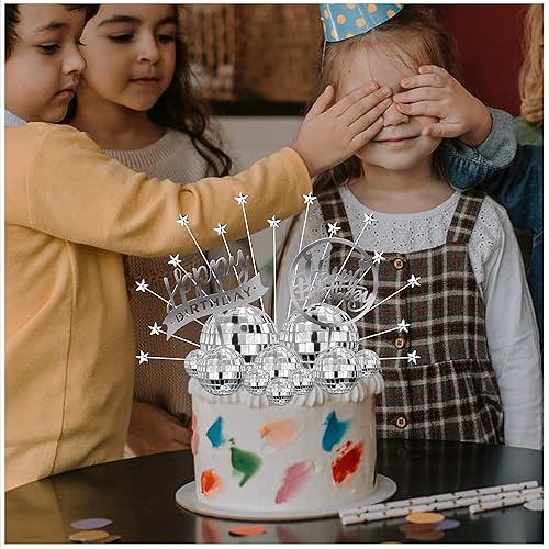Disco Ball Cake Toppers, 20pcs 1970s Disco Ball Cake Decorations