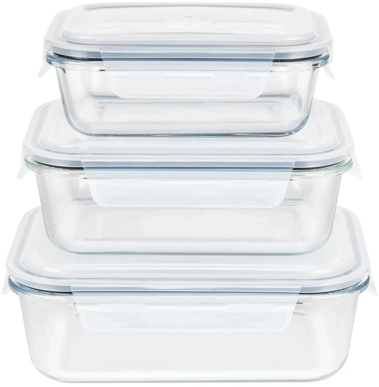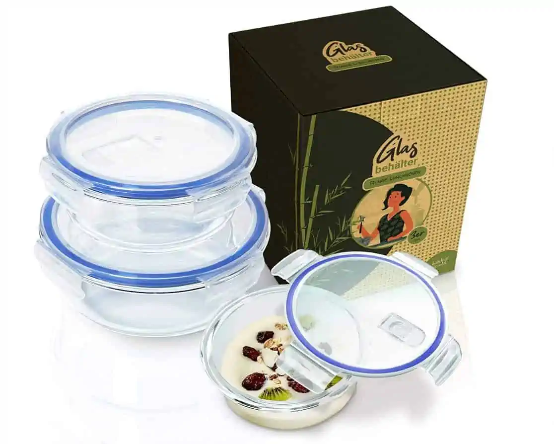Bambuswald© Auslaufsichere Vorratdosen Glas Mit Luftdichten Deckel 3er Set Verschliebare Stapelbare Glasbehalter 400ml 620ml 950ml Ofenform Lunchbox Dose Auflaufform Frischhaltedosen 77039938